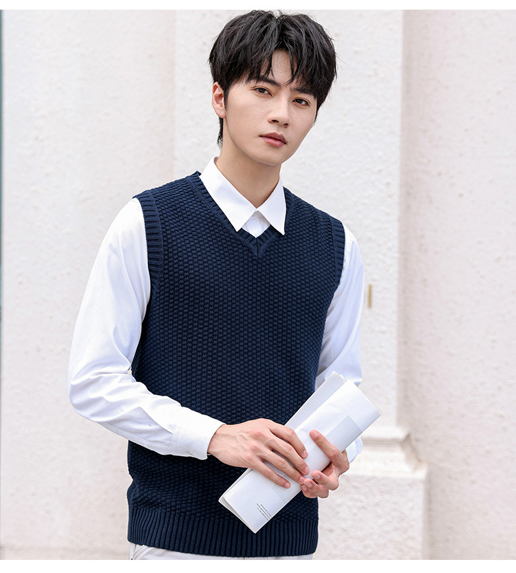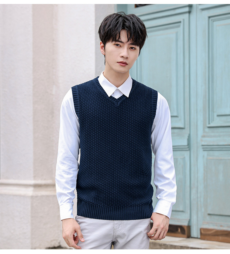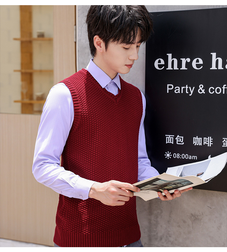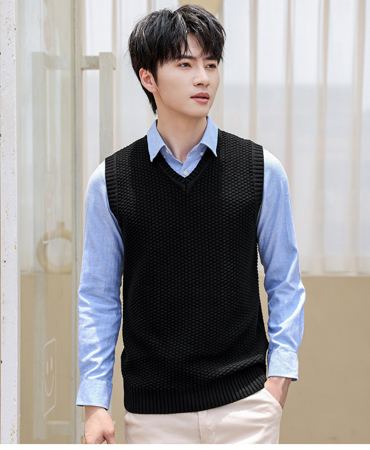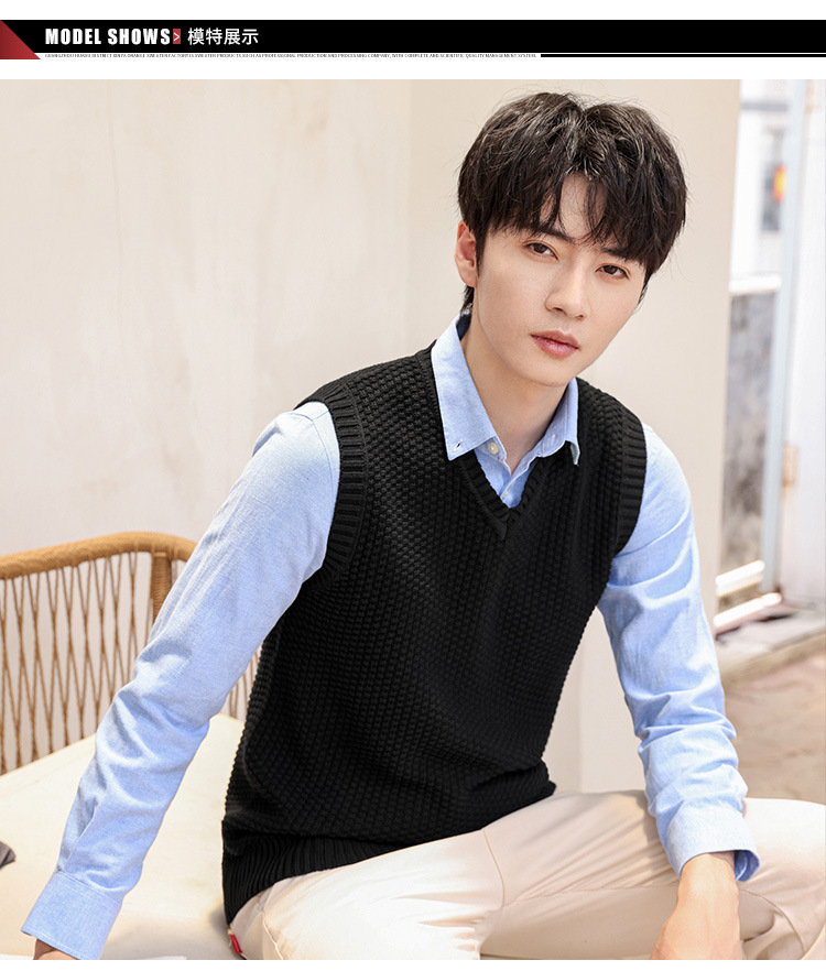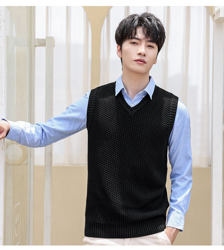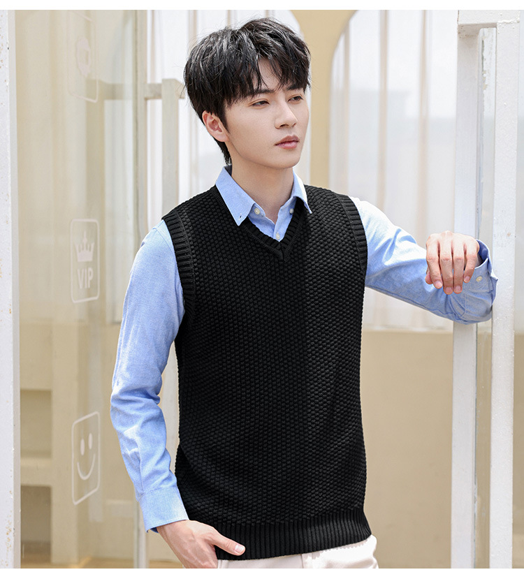 Осенне-Зимний новый жилет-свитер, мужской однотонный жилет без рукавов с V-образным вырезом, Молодежный Модный корейский мужской вязаный жилет