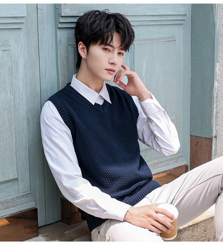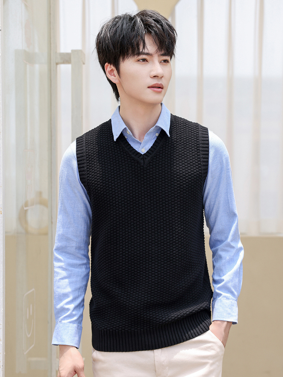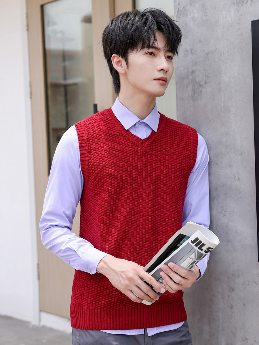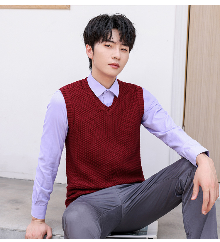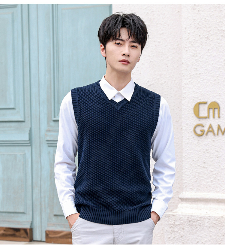 Осенне-Зимний новый жилет-свитер, мужской однотонный жилет без рукавов с V-образным вырезом, Молодежный Модный корейский мужской вязаный жилет