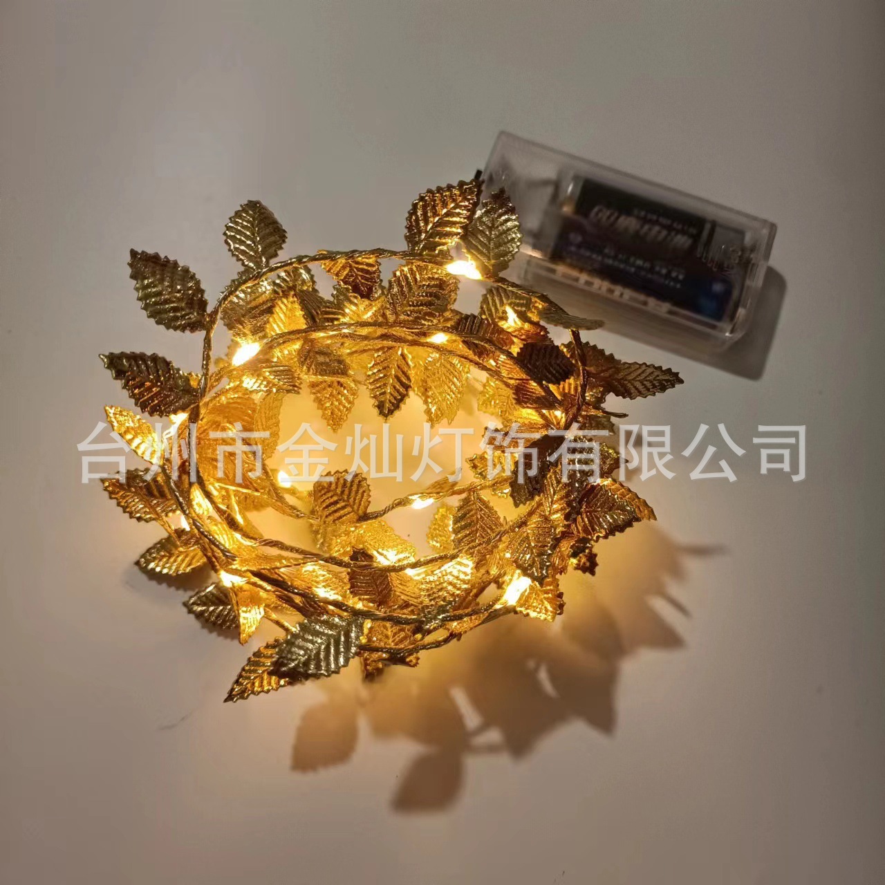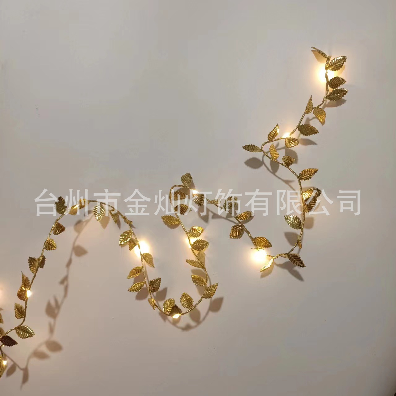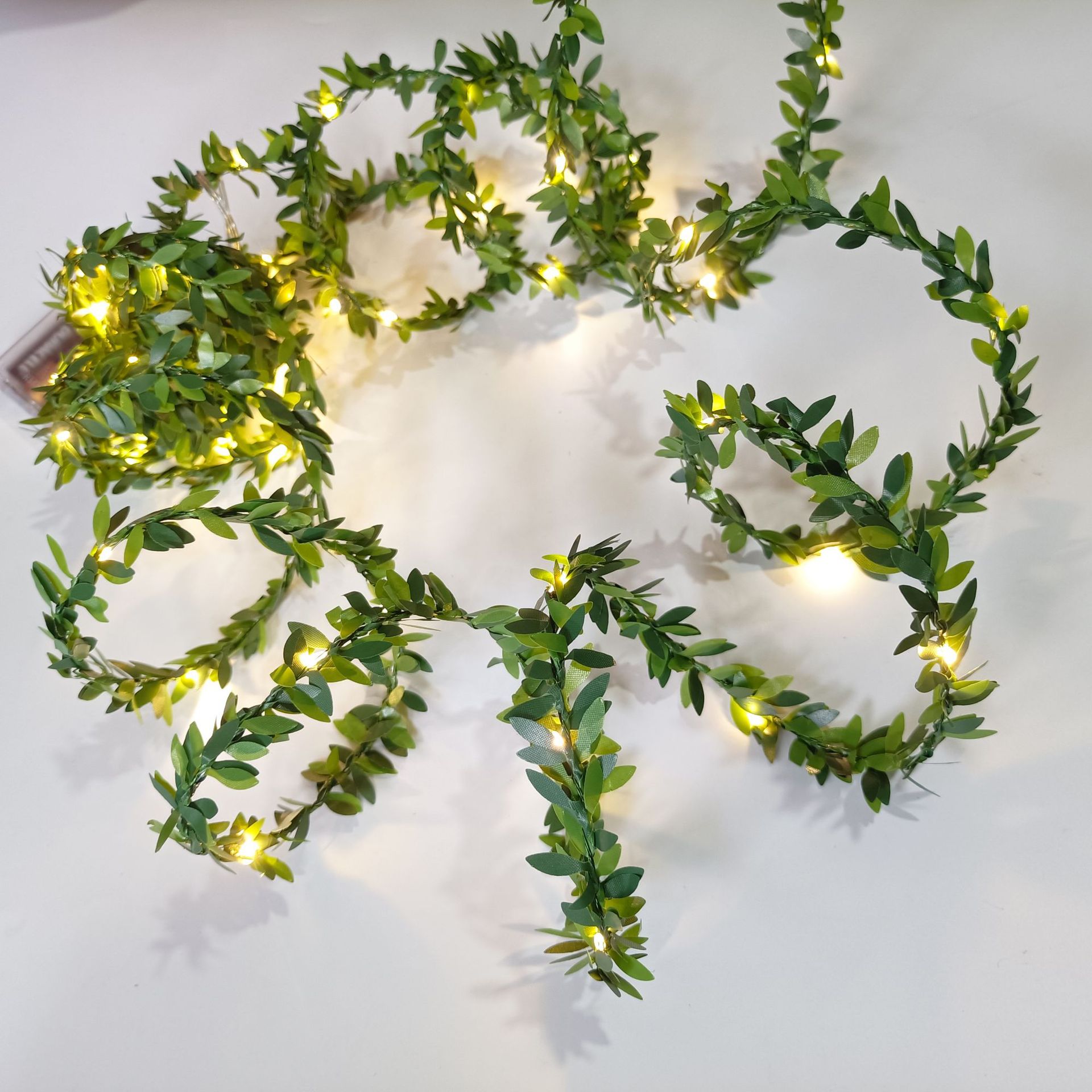 Трансграничные горячие продажи золотой имитационный ротанг лампа струнная батарея интерьер праздничный декоративный струнный свет светодиодный зеленый лист ротанг лампа