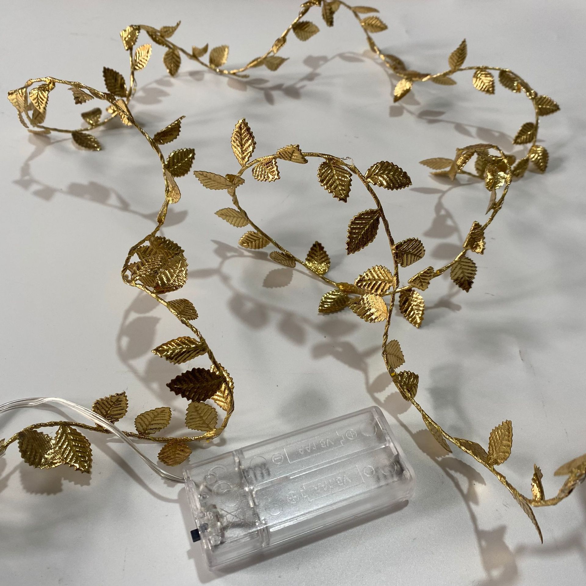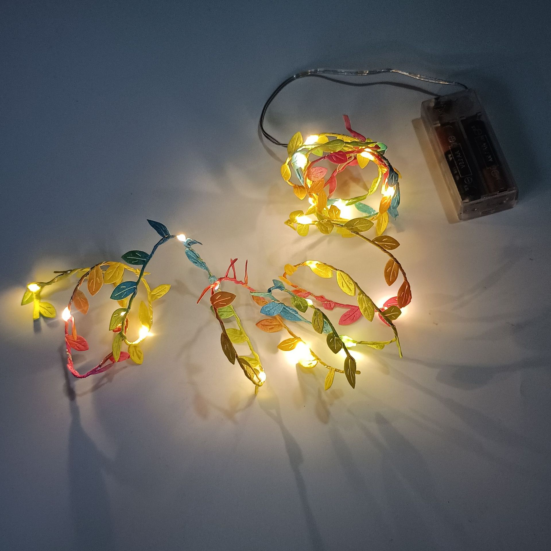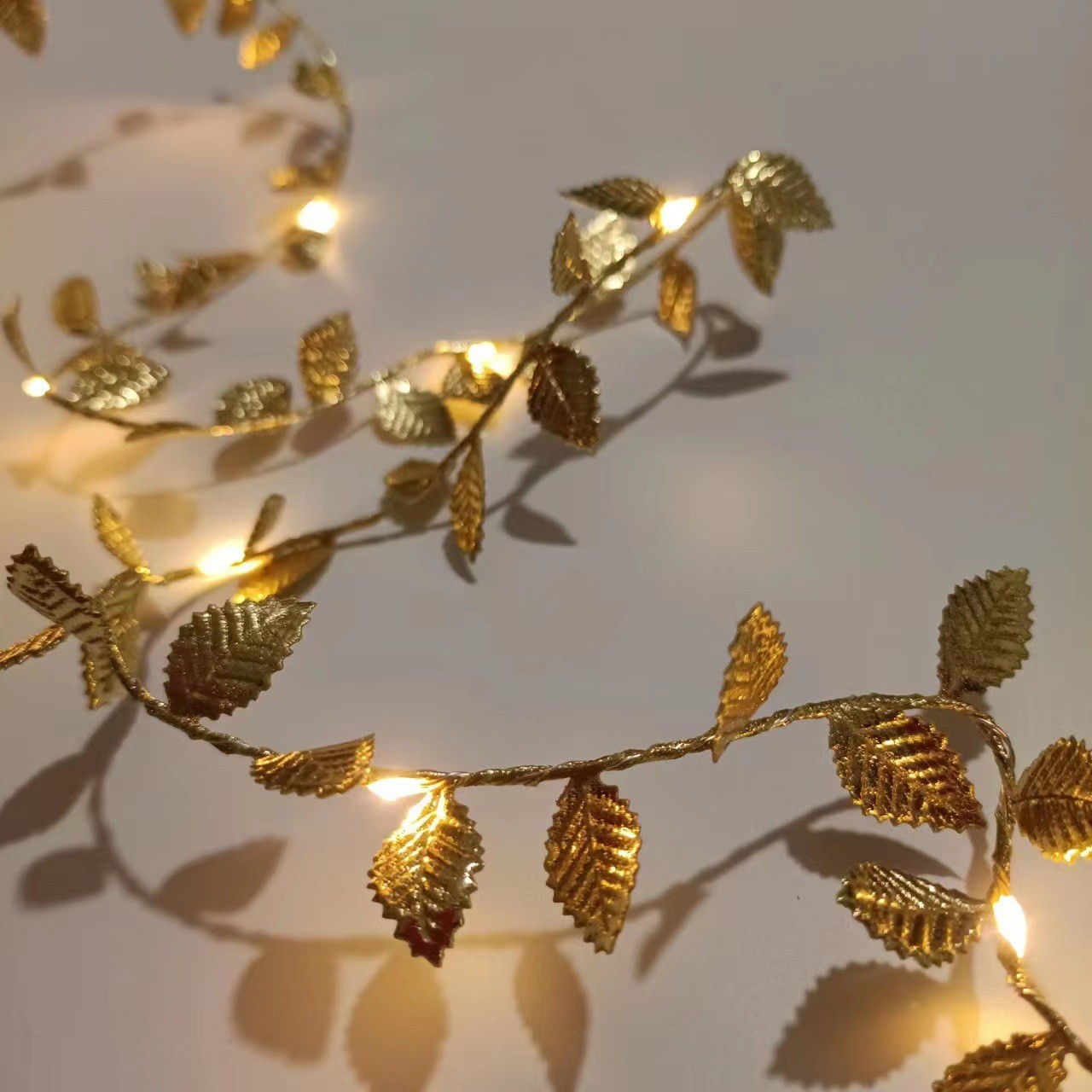 Трансграничные горячие продажи золотой имитационный ротанг лампа струнная батарея интерьер праздничный декоративный струнный свет светодиодный зеленый лист ротанг лампа