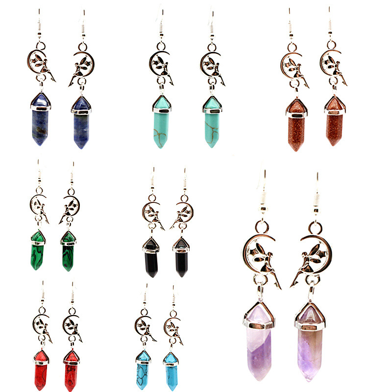 Внешняя торговля ювелирными изделиями оптом Европа и США полые эльф Кристалл шестиугольная Колонка ушной крючок Redstone безделушки