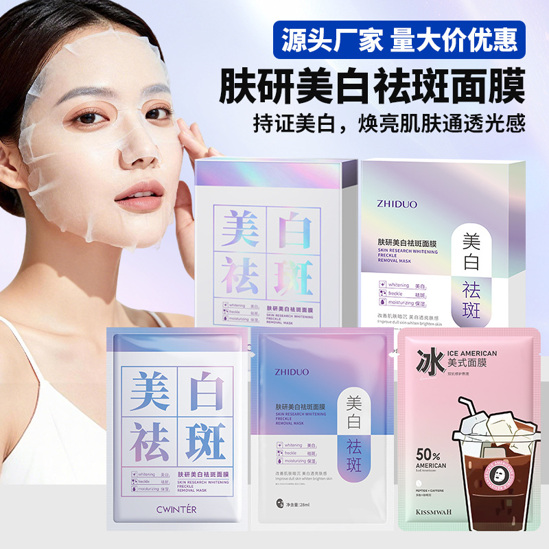 Отбеливающая и противовеснушачья маска Zhiduofuyan (стиль Тянь) — в упаковке 25 мл*5 шт.; Отбеливающая и противовеснушечная маска Zhiduofuyan (стиль Тянь) — лист 25 мл; Отбеливающая и противовеснушечная маска Zhiduofuyan в упаковке 28 мл*5 шт.; Zhiduofuyan Отбеливающая и противовеснушечная маска-лист 28 мл; KISSMWAH Ice American Double Anti-Staying Up Mask Sheet 25 мл