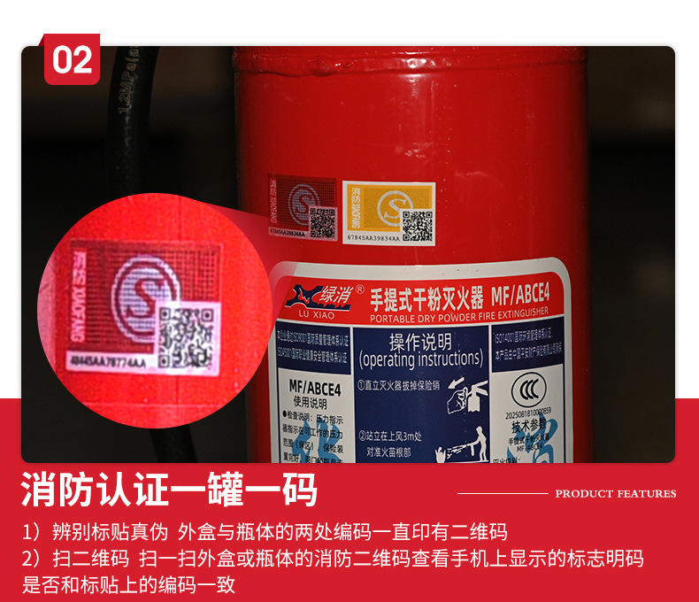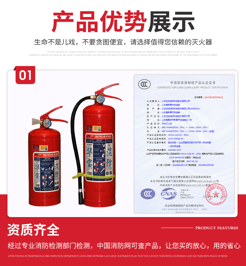 Портативный бытовой огнетушитель для кухни с сухим порошком, стандартный, готовый к использованию, от производителя, модель 4kg