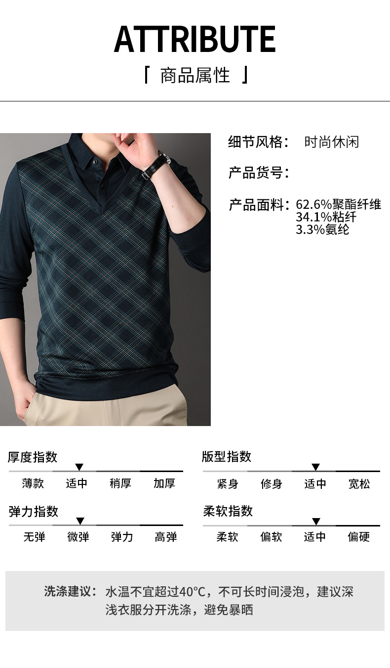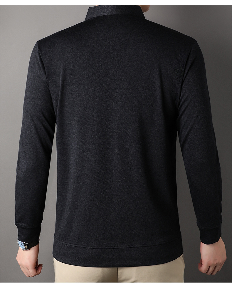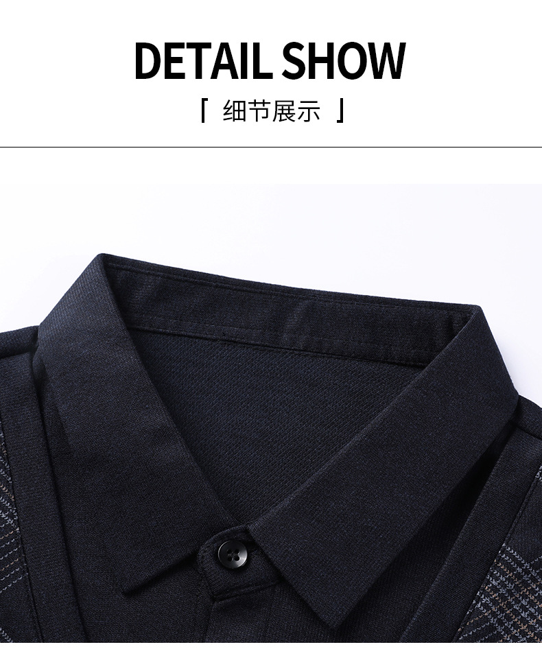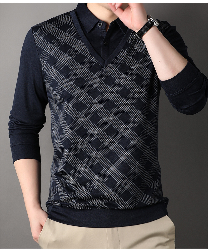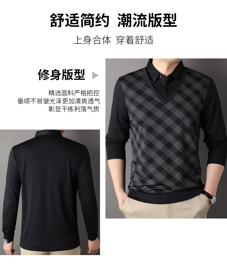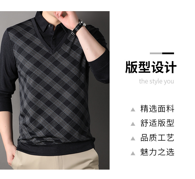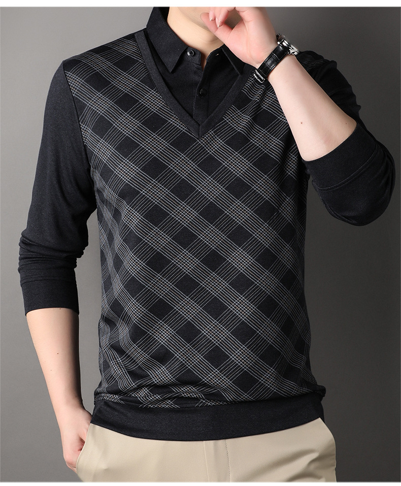 Осенняя футболка с длинными рукавами для папы Весенне-осенняя Тонкая Повседневная Базовая рубашка с отворотами из двух предметов из искусственной кожи для среднего возраста