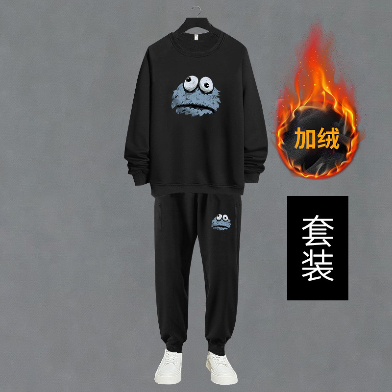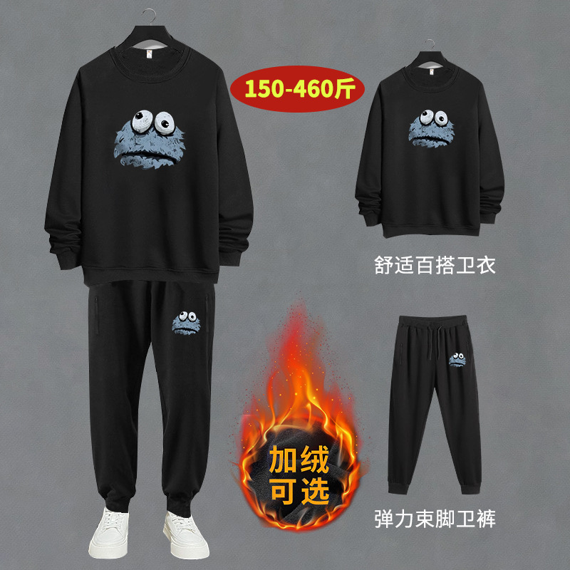 DW1033-DK2033 Очень большой размер 400 кг спортивный хлопковый костюм толстый свитер брюки мужские осенне-зимние флисовые подкладки плюс