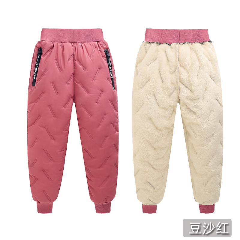 Детские Хлопковые Штаны, утепленные штаны на флисовой подкладке для мальчиков и девочек, зимняя верхняя одежда, большая детская одежда, теплые хлопковые штаны из флиса ягненка