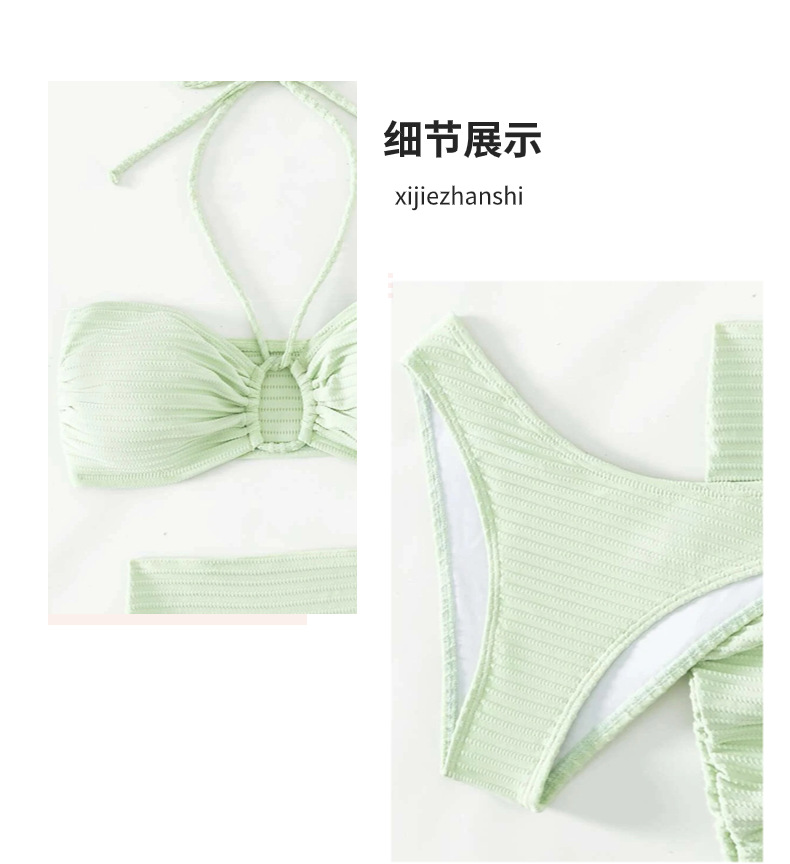 Европейский и американский сексуальный бикини трехкомпонентный купальник женский шейный сплошной цвет купальник пляжный праздничный купальник