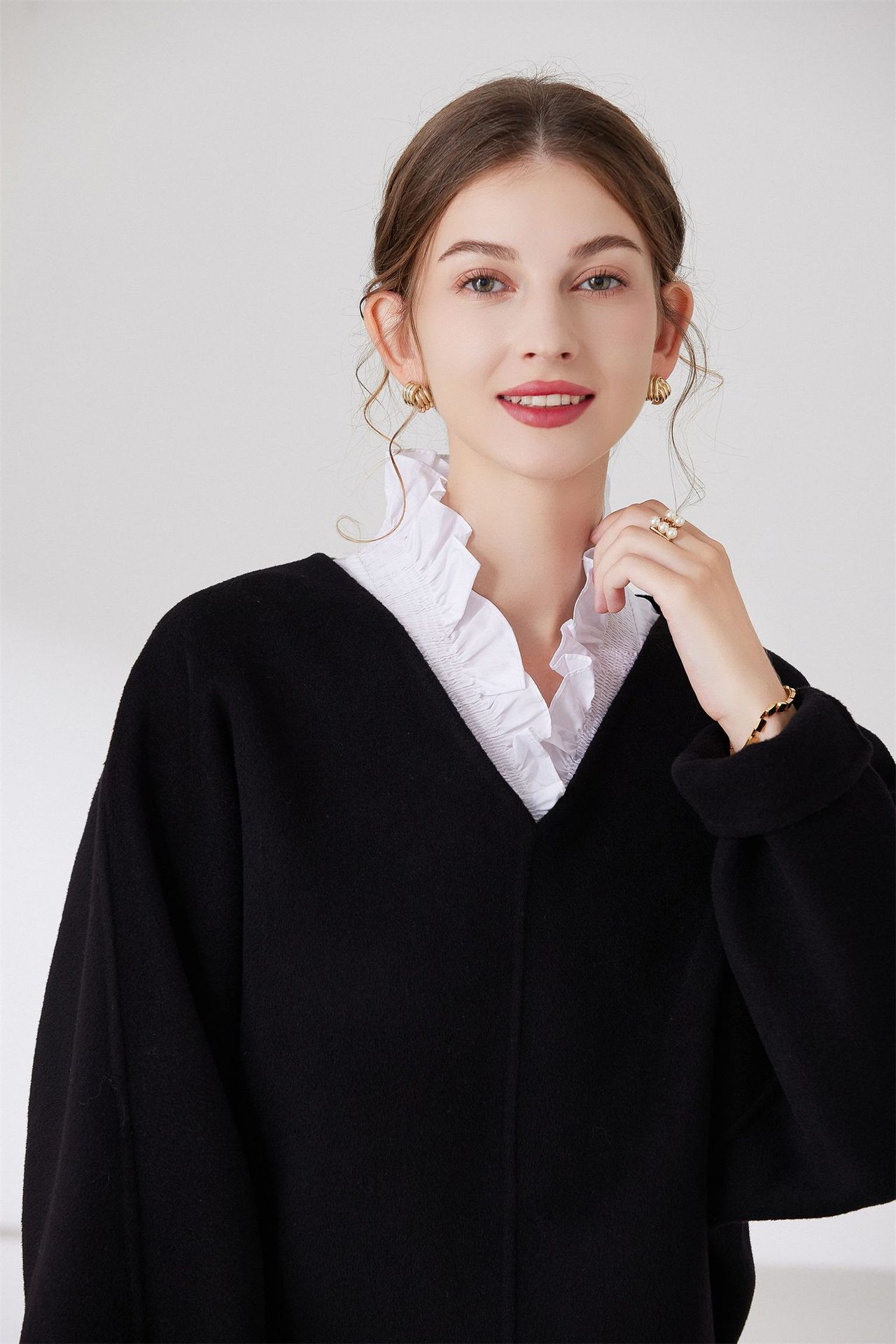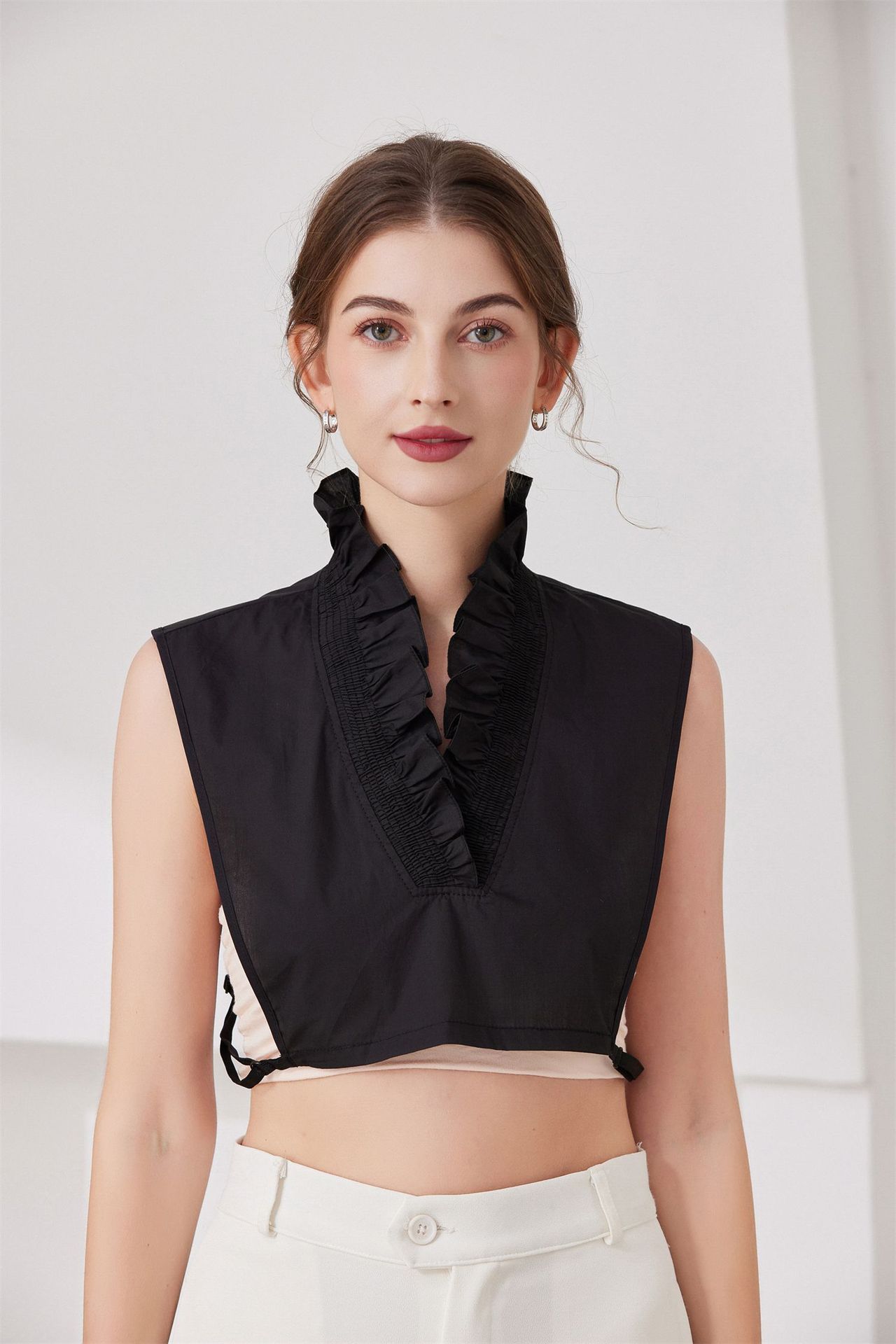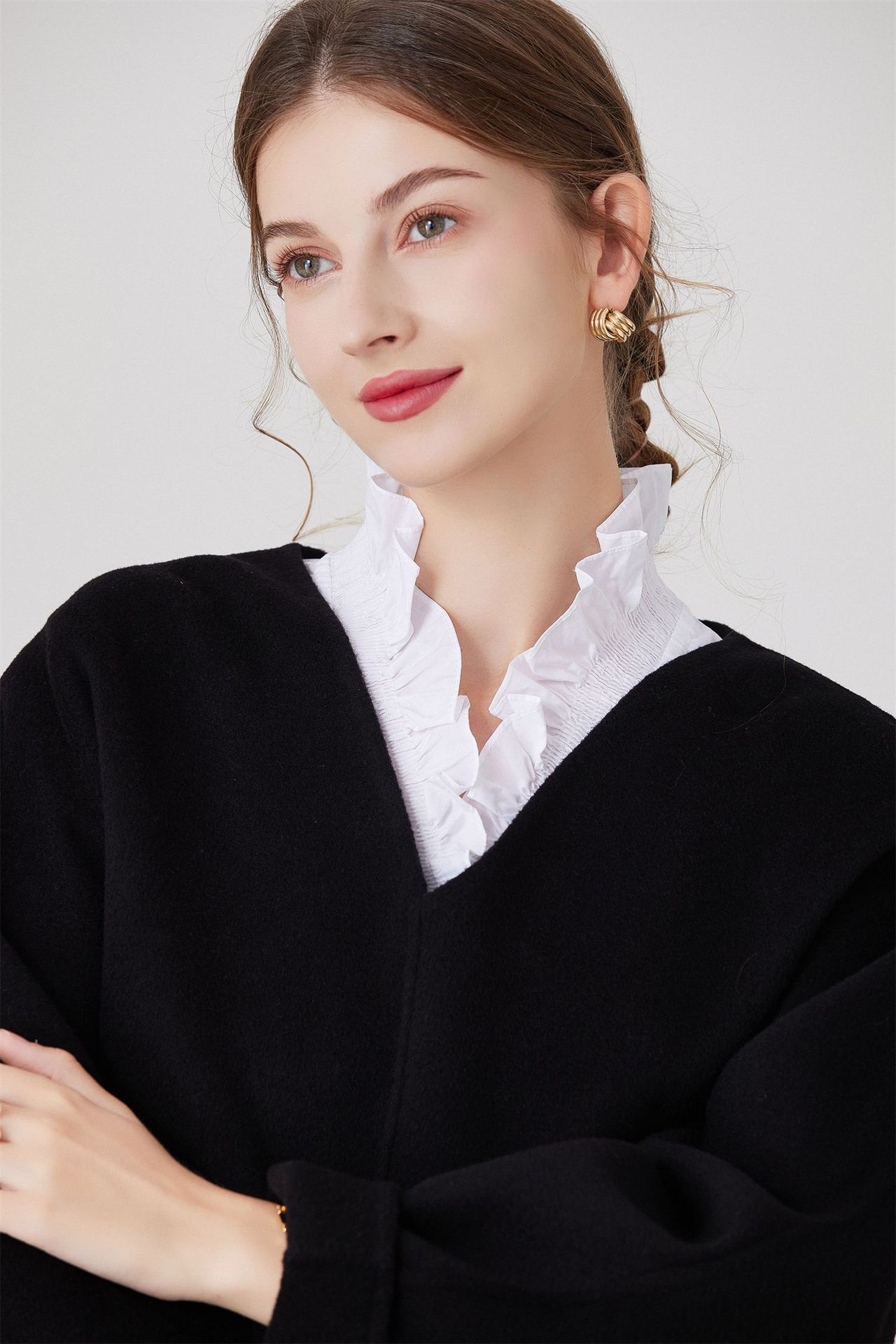 Плиссированная блузка с глубоким v-образным вырезом и искусственным воротником с декоративным воротником, осенне-зимний одинаковый свитер, кардиган, белый пролет