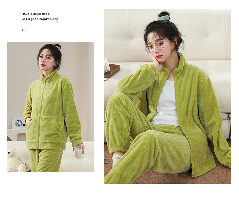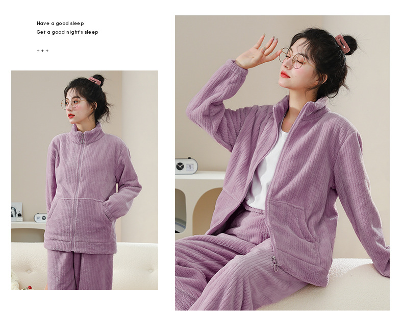 Женский домашний комплект из кораллового флиса на молнии с воротником-стойкой, утепленный фланелевый, осенне-зимний, 2026 год.