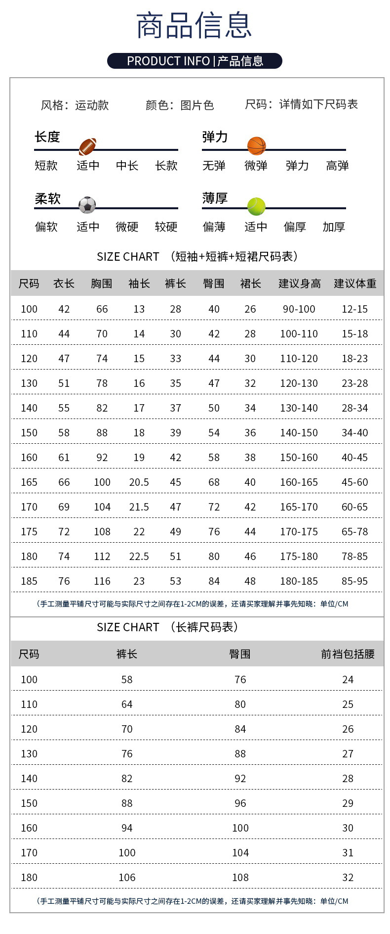 100 см; 110 см; 120 см; 130 см; 140 см; 150 см; 160 см; 170 см; 180 см
