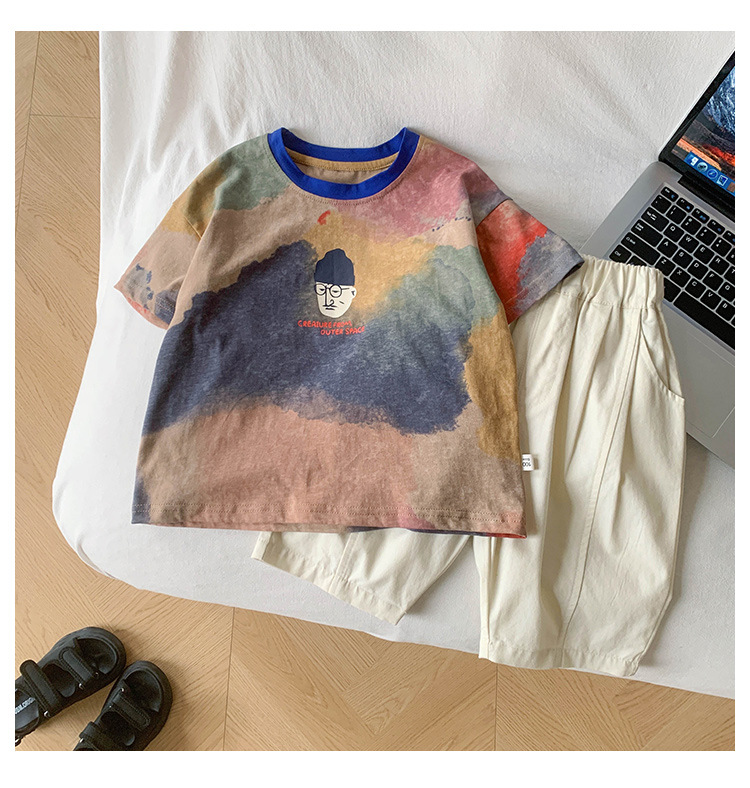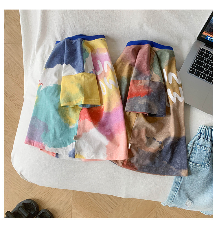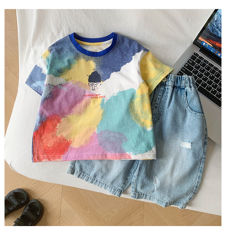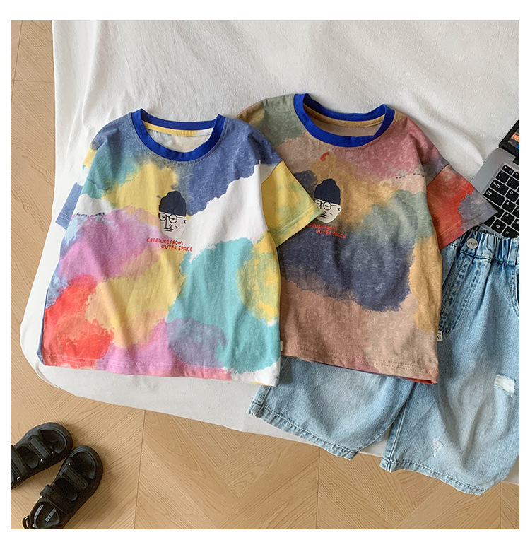 Valley of the Wind, новинка лета 2025 года, детская футболка с принтом в стиле тай-дай для мальчиков, тонкая, с короткими рукавами в красивом чернильном стиле.