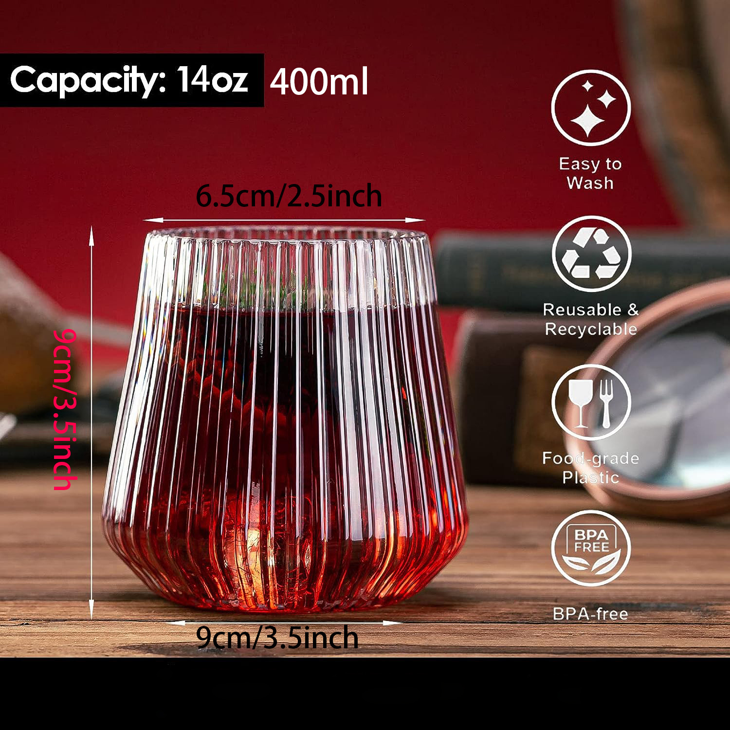 Амазонка 36 упакованных 14OZ одноразовые пластиковые бокалы для красного вина
