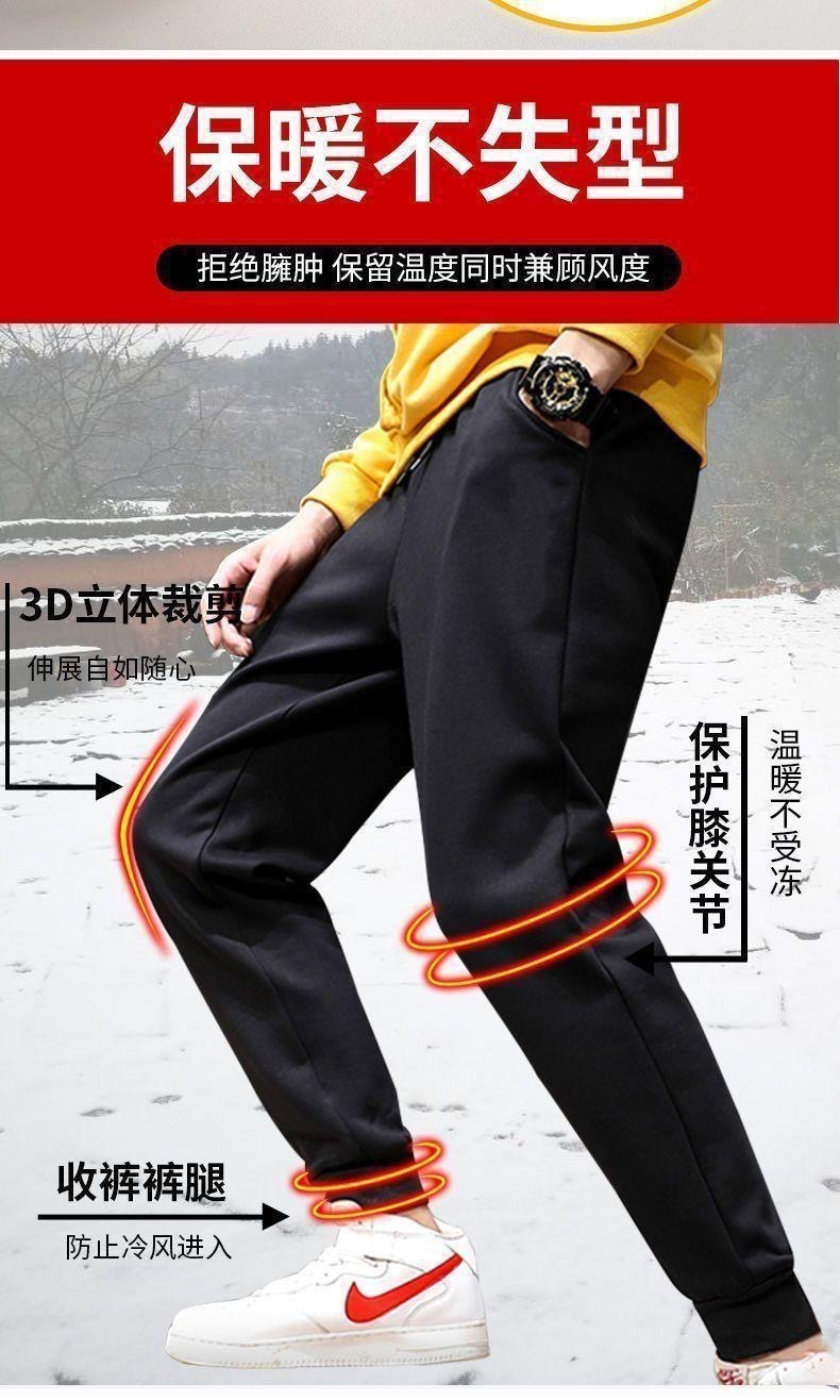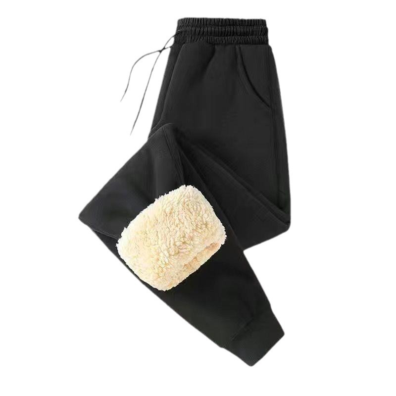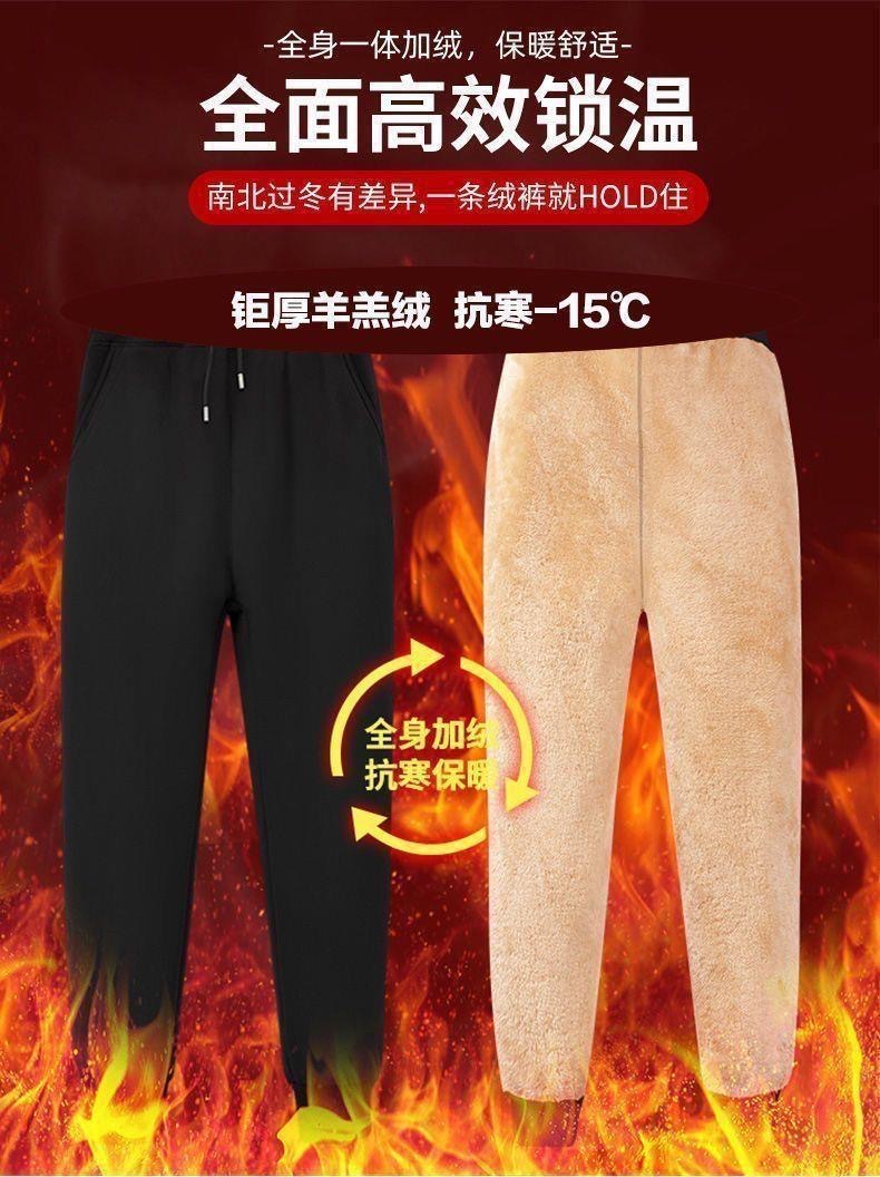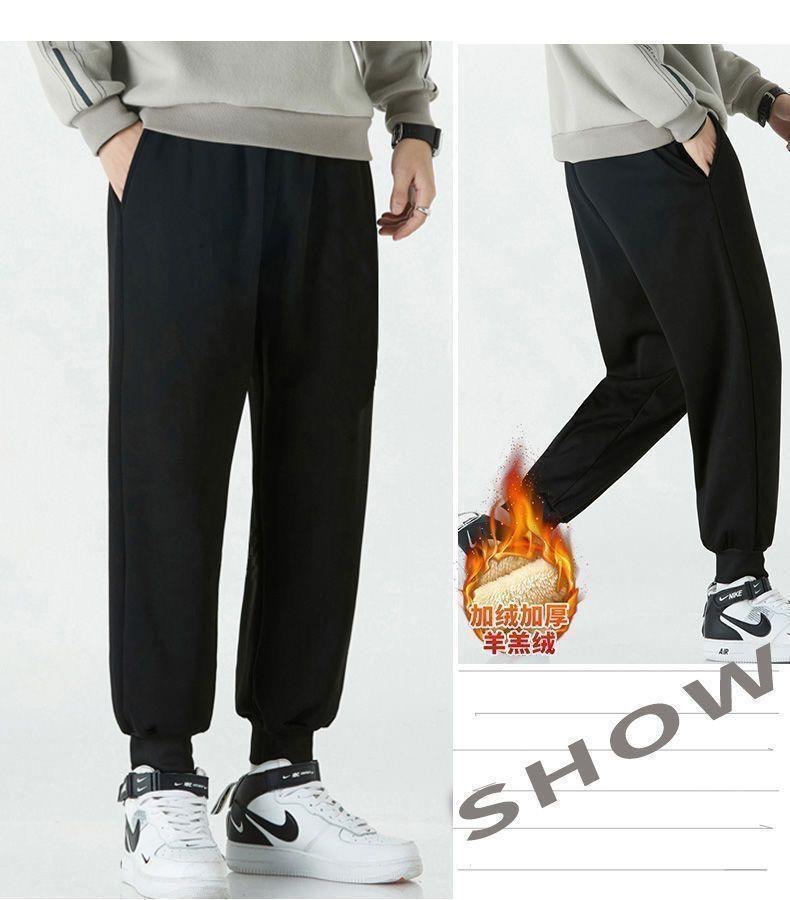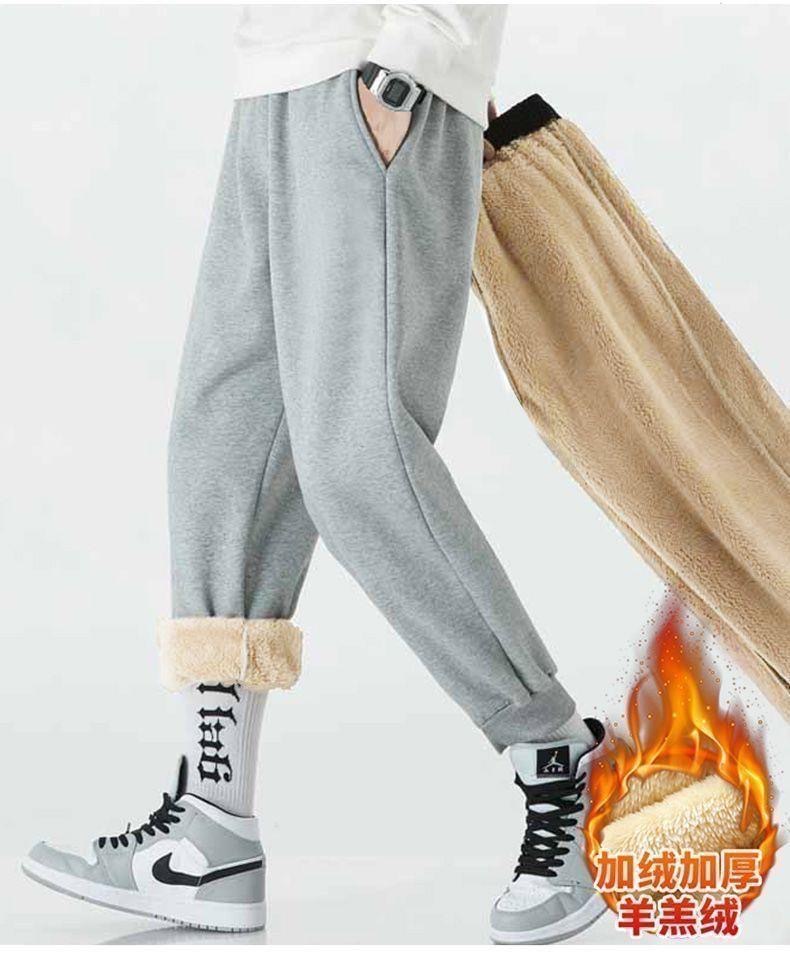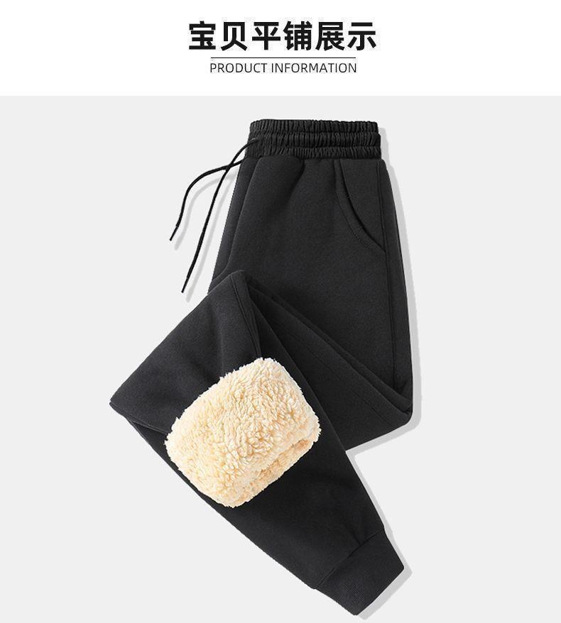 Модные зимние спортивные брюки, мужские бархатные брюки из овечьей шерсти на завязках, утолщенные Свободные повседневные длинные брюки очень большого размера с флисовой подкладкой