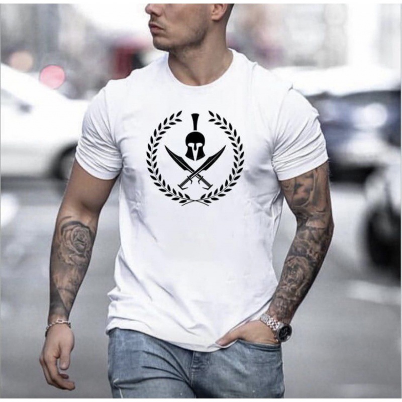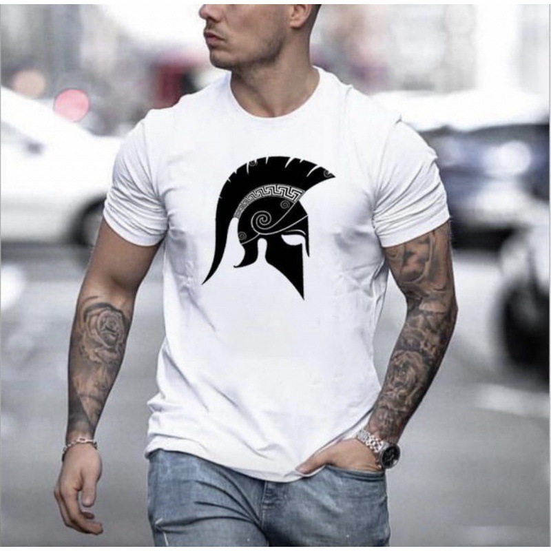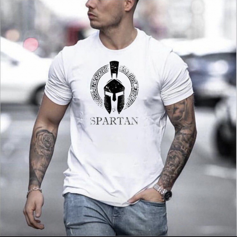 Amazon желаю европейский и американский мужской Спартанский топ с коротким рукавом и круглым вырезом