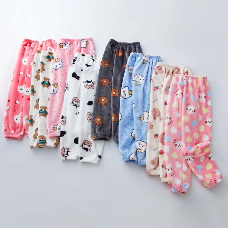Осенне-зимние детские Фланелевые Пижамные брюки, милые Мультяшные теплые брюки для мальчиков и девочек
