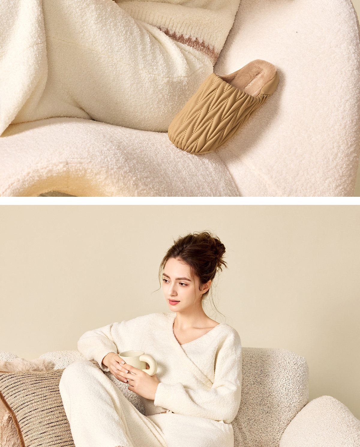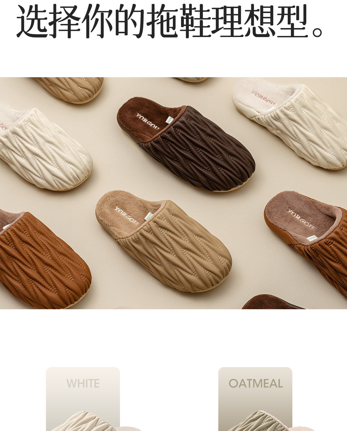 Женские хлопковые тапочки Far Harbor с складками, новинка осени-зимы 2025 года, домашние, водонепроницаемые, теплые, из кожи полыни, также для мужчин.
