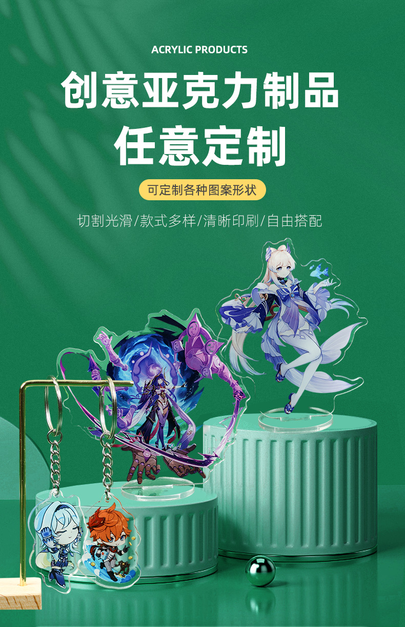 我厂专业生产亚克力制品,支持定制加工,车间工整设备齐全。 产品类型:咕卡盘、咕卡砖、钥匙扣、立牌等等 打样速度快!产生高!欢迎来电咨询!