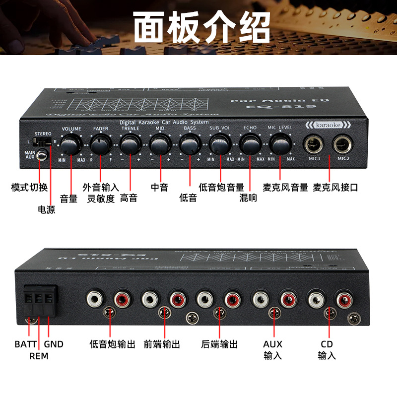 EQ-819 Автомобильный эквалайзер Сбалансированный усилитель с входом для микрофона и регулировкой чувствительности внешнего звукового входа
