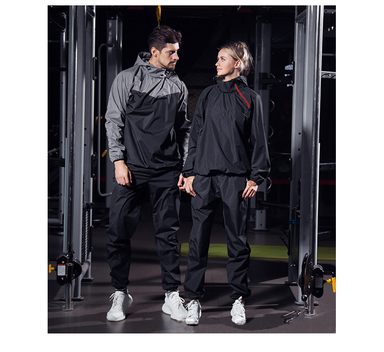 Спортивный костюм с внутренней сеткой, спортивный костюм для фитнеса, бега, пота для мужчин и женщин, весенне-осенний модный комплект из двух предметов для тренировок для похудения