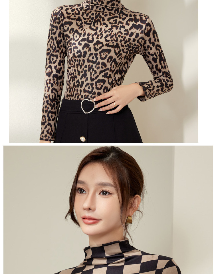 Осенне-зимний новый стиль, немецкая бархатная теплая рубашка с принтом, женская рубашка с длинными рукавами большого размера, утягивающая полугольф, топ с леопардовым принтом