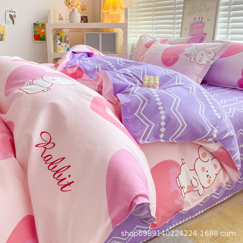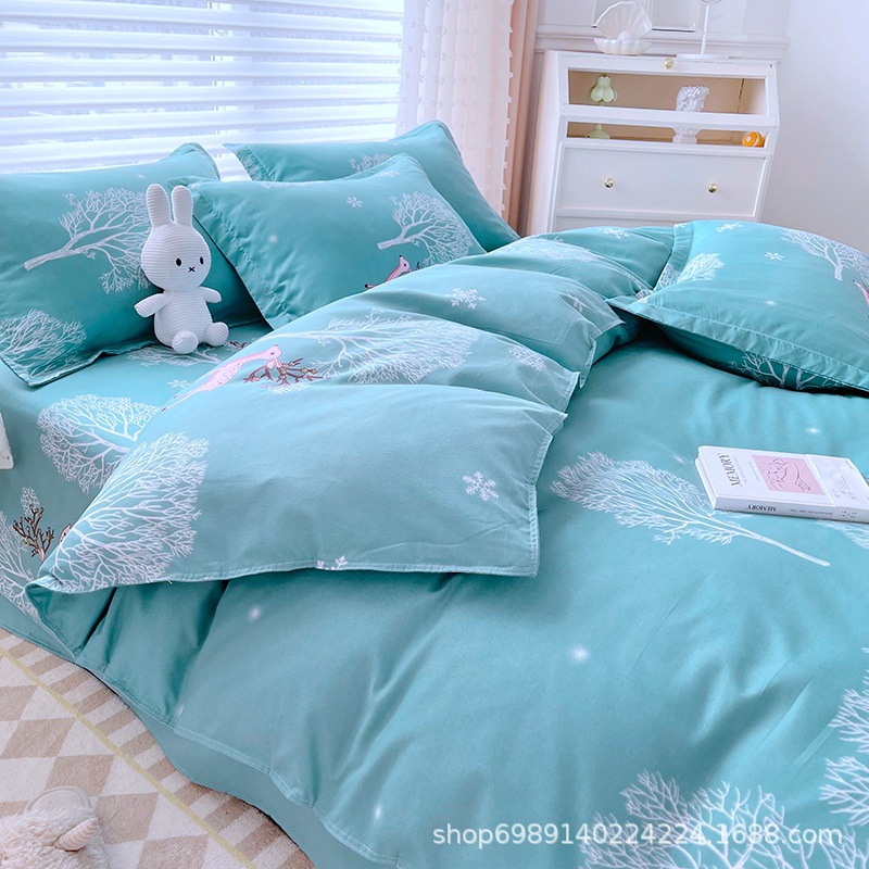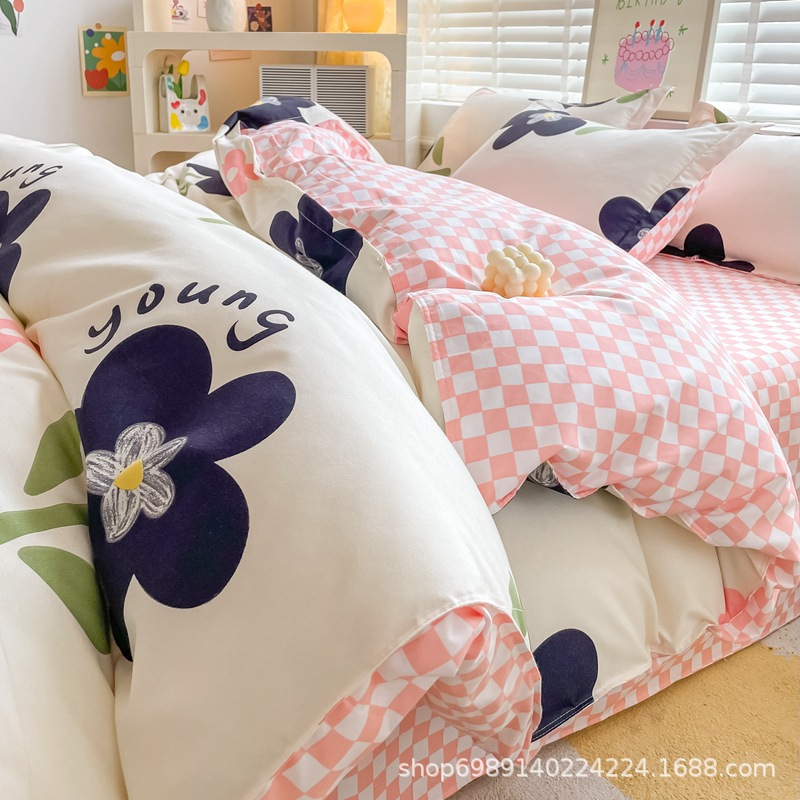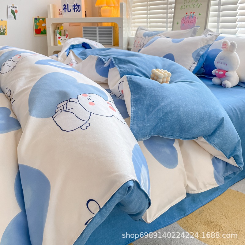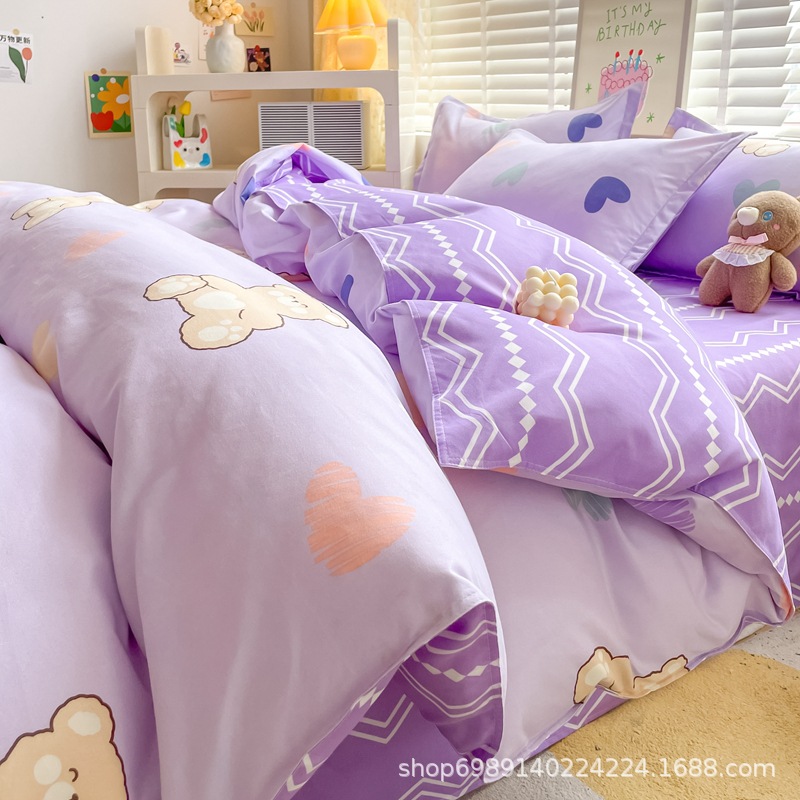 Корейский шлифовальный комплект из четырех предметов оптом, небольшая свежая простыня для студенческого общежития, пододеяльник, комплект из трех предметов, четыре сезона, универсальный