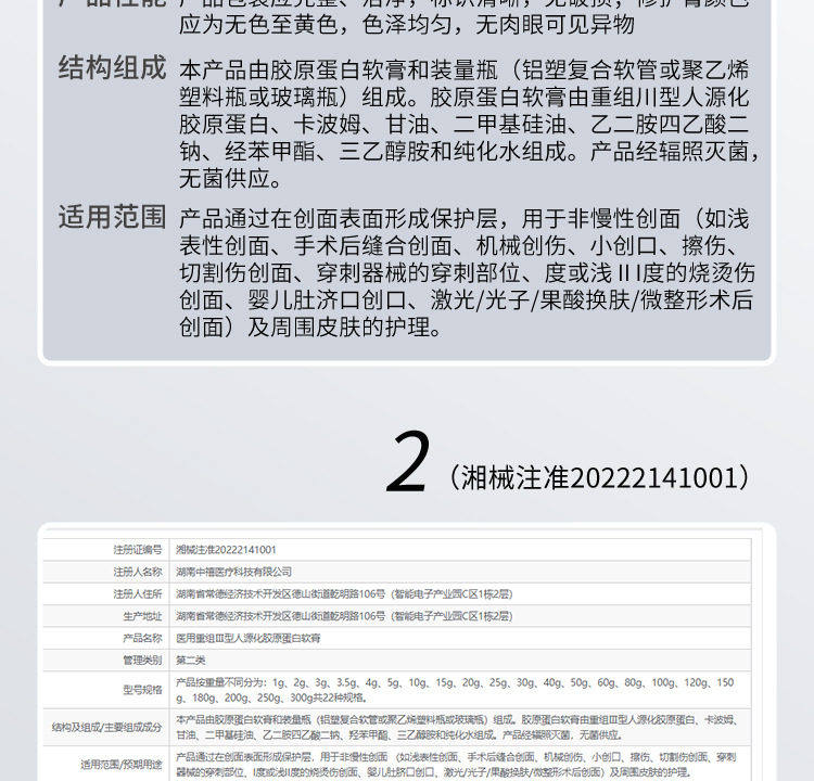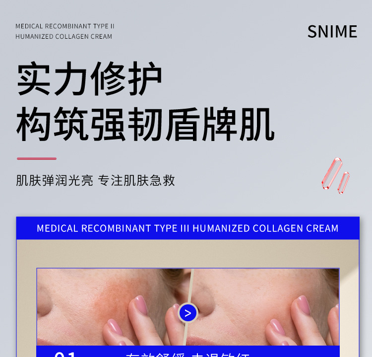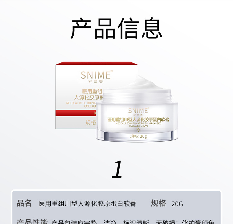 Медицинская мазь Shunaimei с рекомбинантным гуманизированным коллагеном для ухода за кожей послеоперационных ран, увлажняющая, категория II