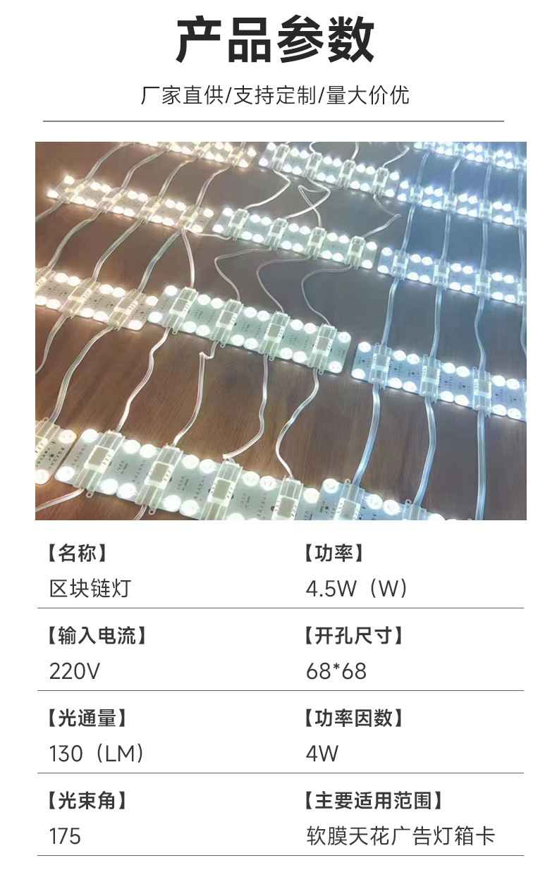 Блок-лампа 220V 100 светодиодных блочных ламп блок-цепи Модуль потолка Кабан световой короб световой блок блочной лампы мягкий пленочный день