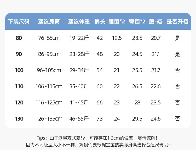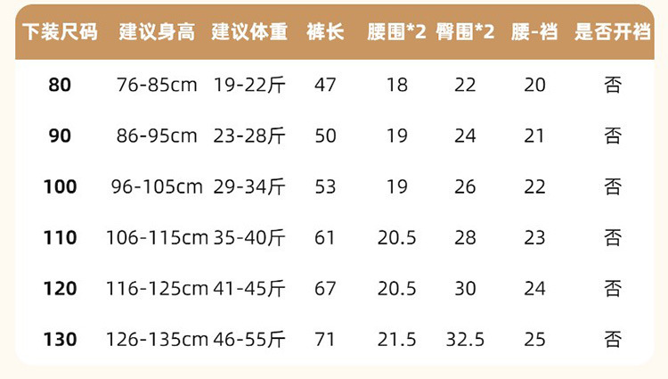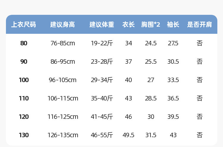 Размер 80 (подходит на рост 76-85 см); Размер 90 (подходит на рост 86-95 см); Размер 100 (подходит на рост 96-105 см); Размер 110 (подходит на рост 106-115 см); Размер 120 (подходит на рост 116-125 см); Размер 130 (подходит на рост 126-135 см)