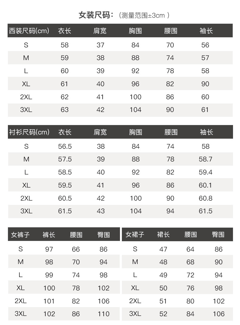 Белая рубашка 6661; Серая рубашка 6661; Цельный костюм (цвет сообщения); Цельная юбка (цвет сообщения); Сплошные брюки (цвет сообщения); Черный костюм + юбка; Синий костюм + юбка; Красный костюм + юбка; Черный костюм + брюки; Синий костюм + брюки; Красный костюм + брюки