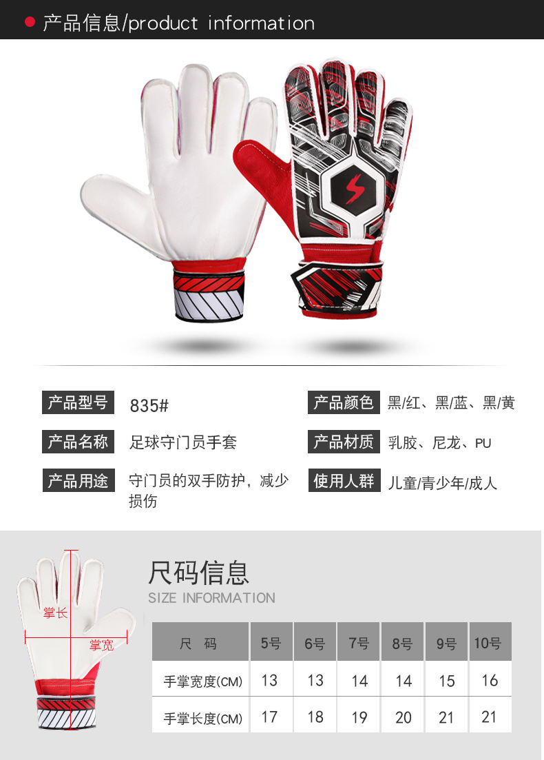 Вратарские перчатки с защитой пальцев Перчатки вратаря для взрослых Детские утолщенные латексные противоскользящие перчатки для тренировок в футбольном матче