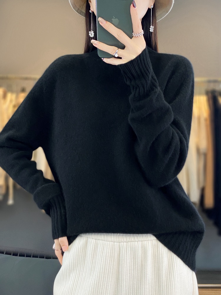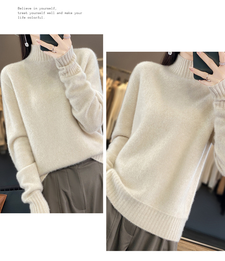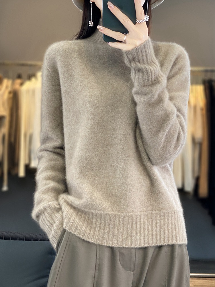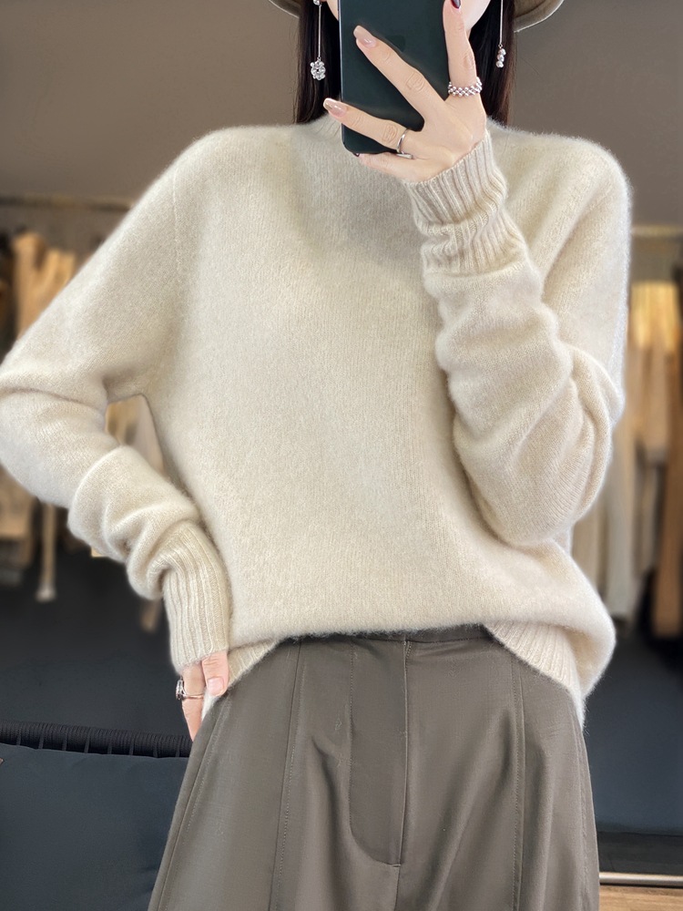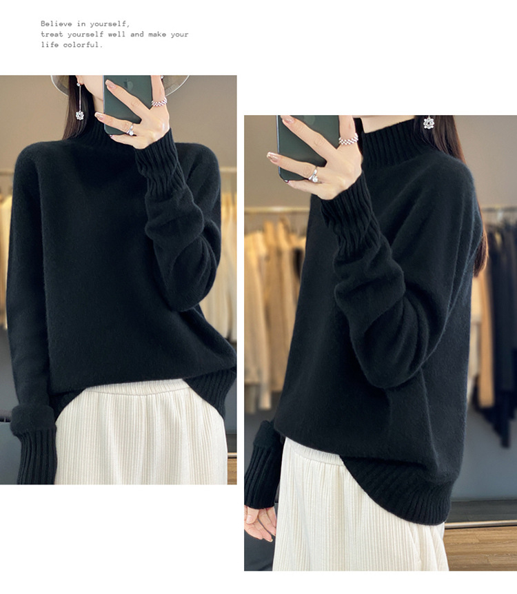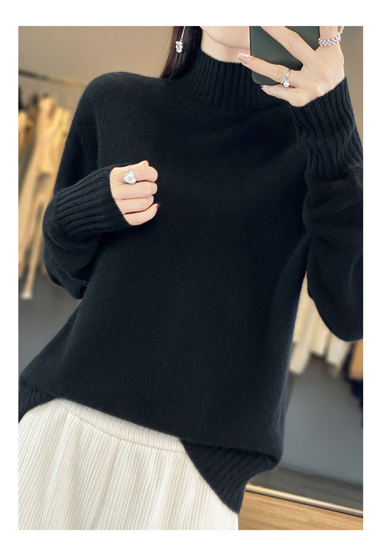 Утолщенная водолазка из чистого шерстяного свитера, женский осенне-зимний пуловер в Корейском стиле, Свободный вязаный шерстяной свитер для похудения