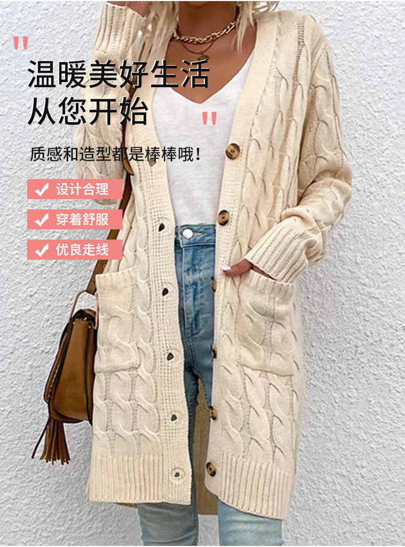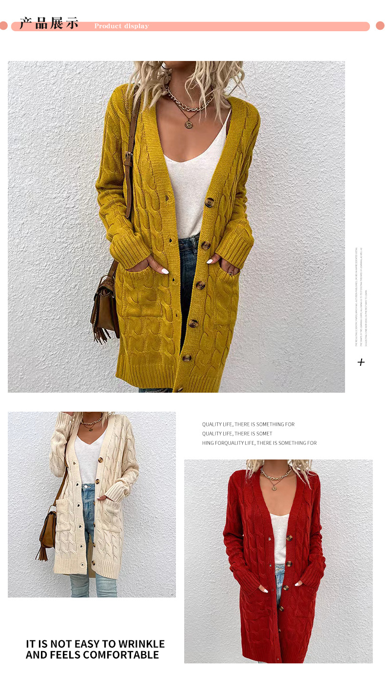 Трансграничная осень-зима, Новая модная женская верхняя одежда, кардиган, свитер, женская модная длинная однобортная повседневная куртка-кардиган