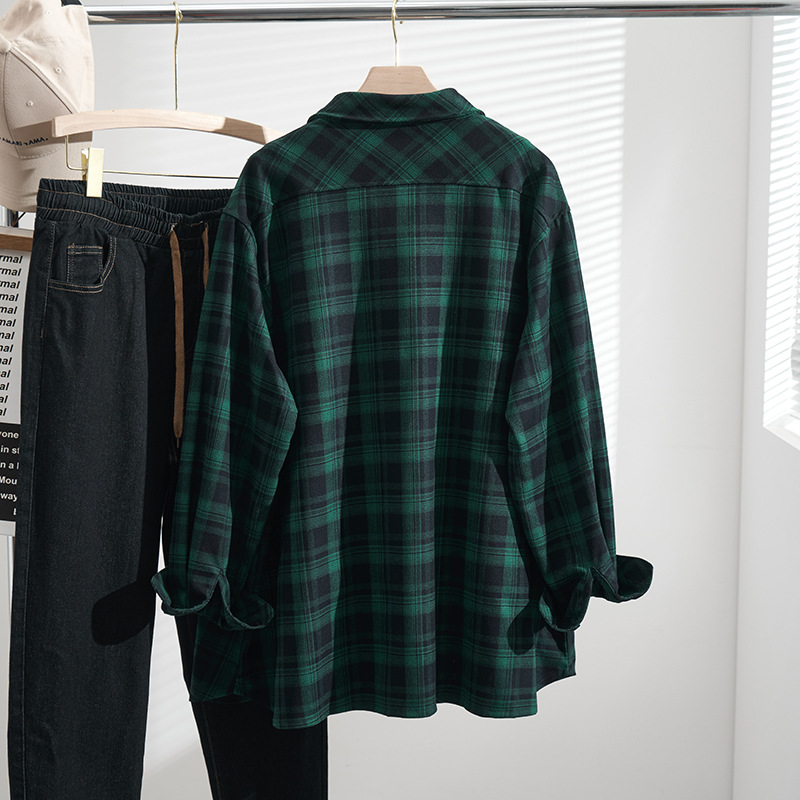 Весенне-осенняя Корейская версия свободной шлифовальной клетчатой рубашки большого размера для пухленьких девочек, увеличивающая жир, 240 кг, рубашка с длинным рукавом S5214