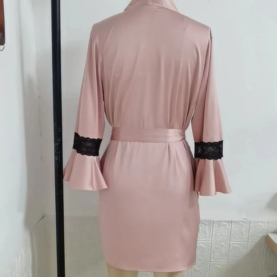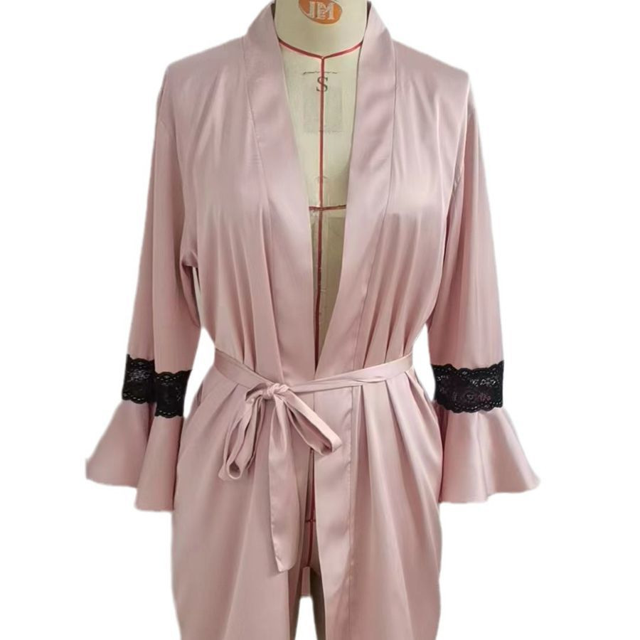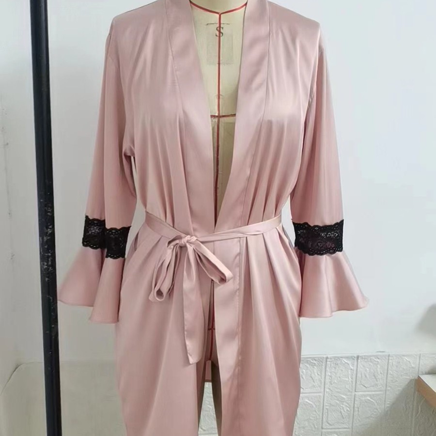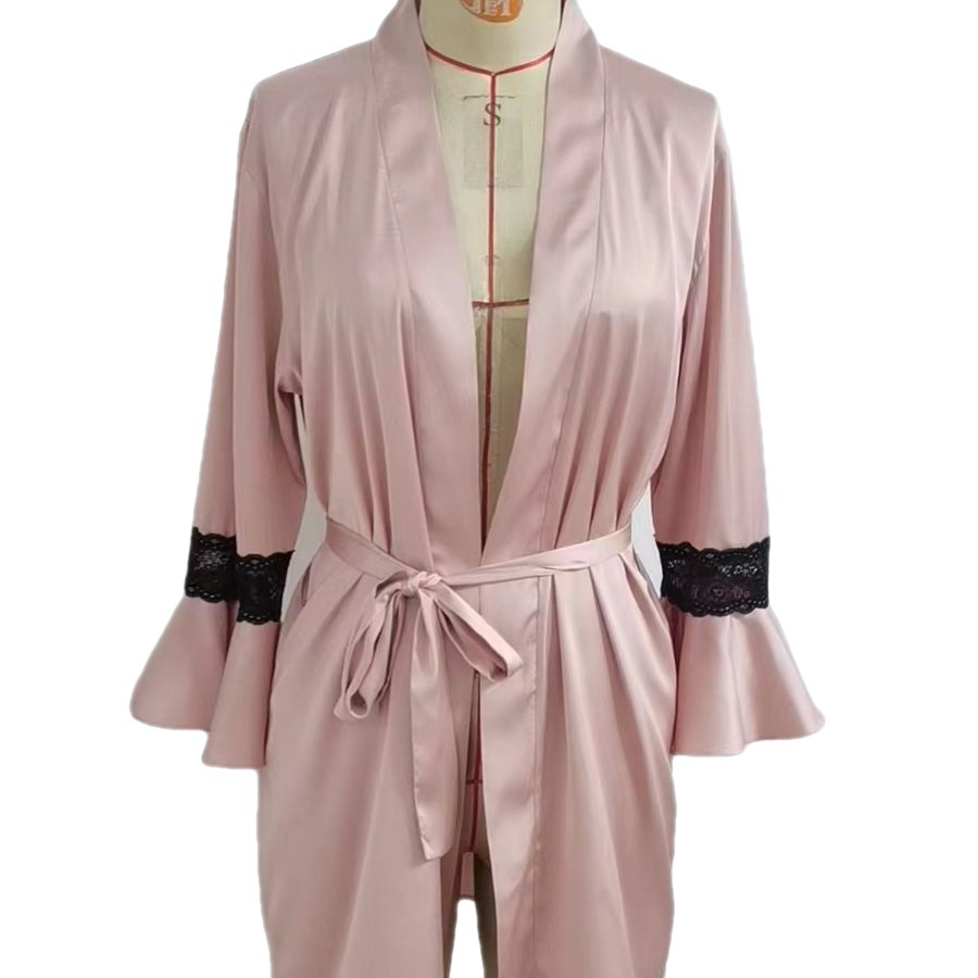 Однотонный сексуальный халат, атласная пижама на четыре сезона, ночная рубашка, Свободная Женская домашняя одежда на шнуровке, забавная 1922