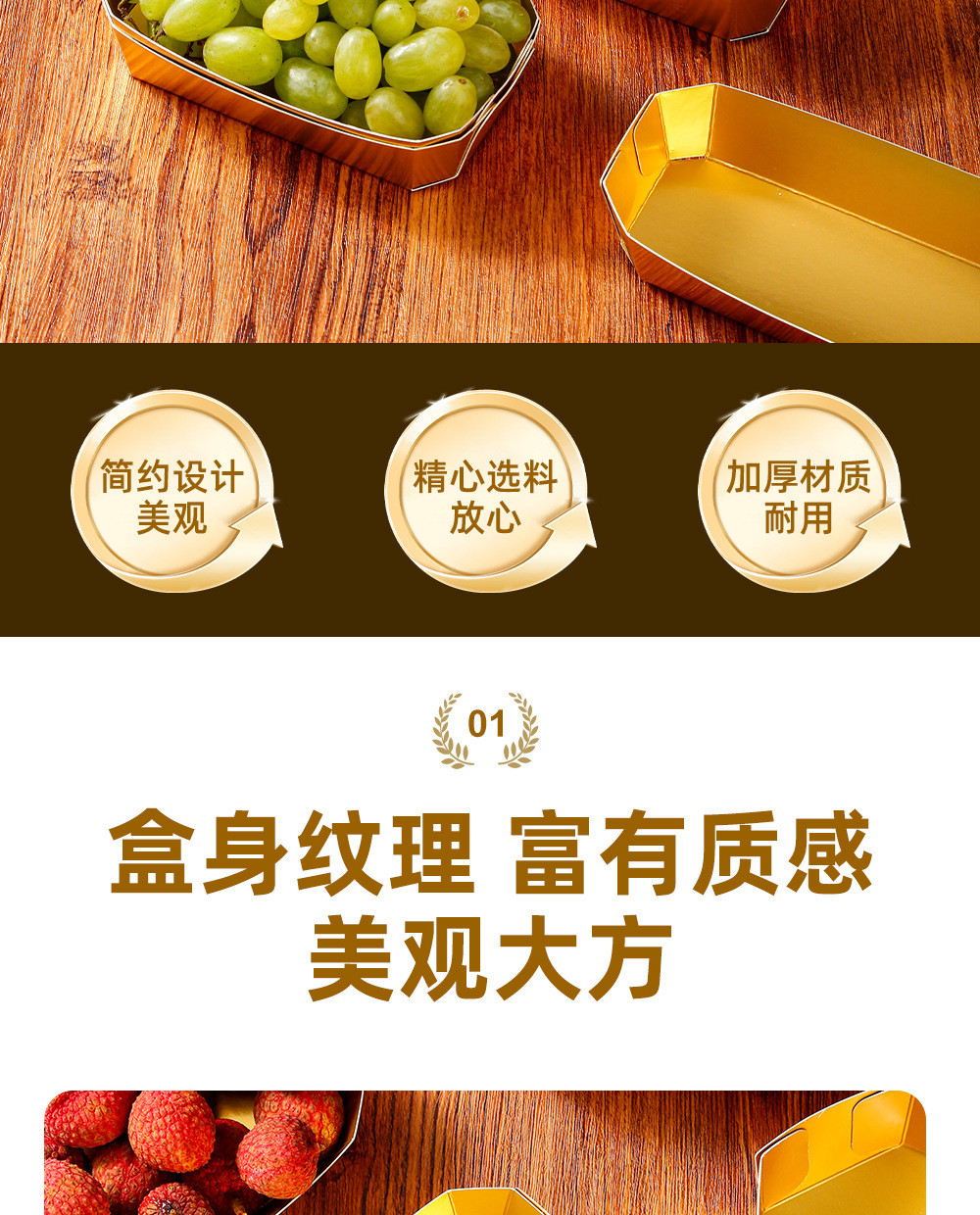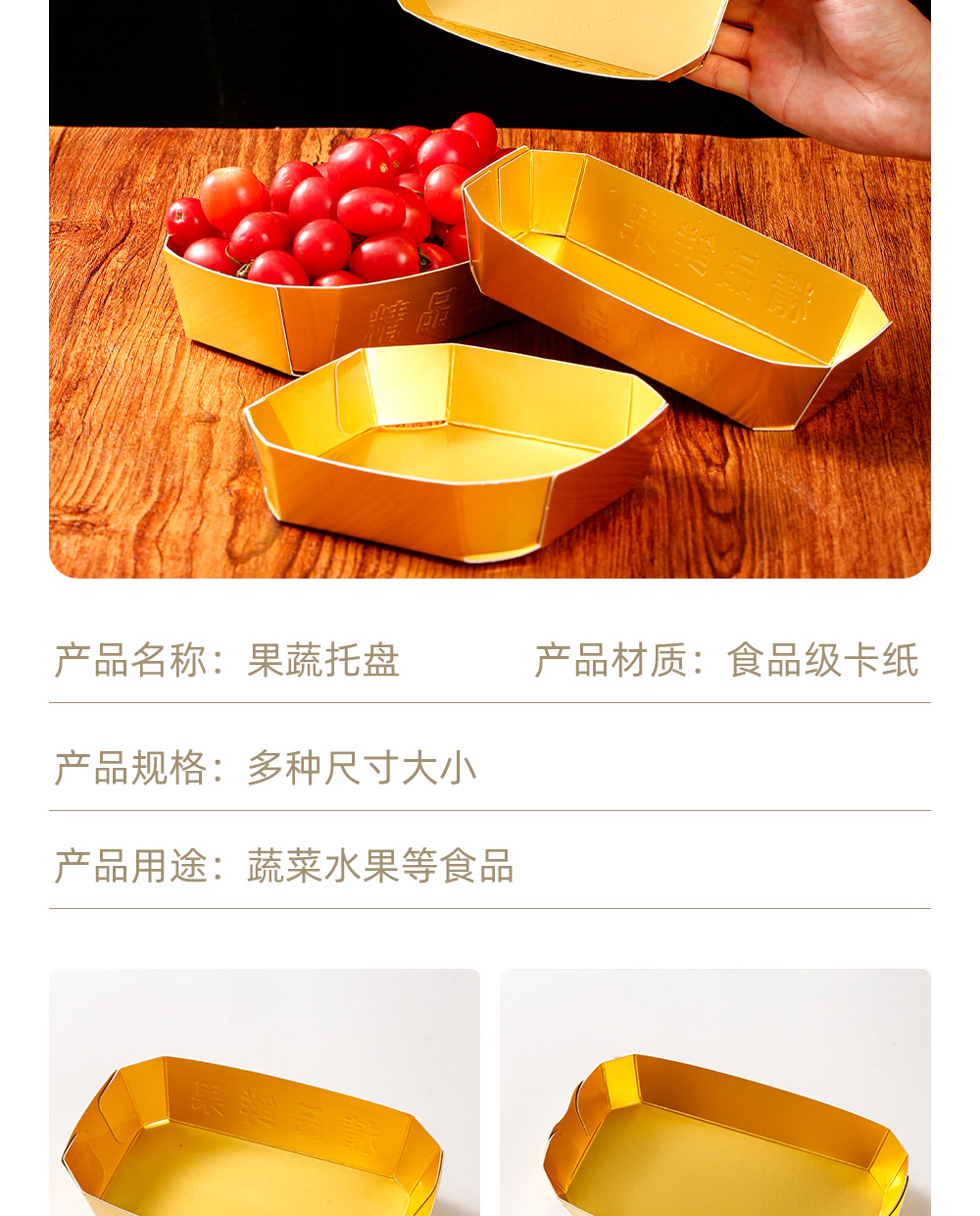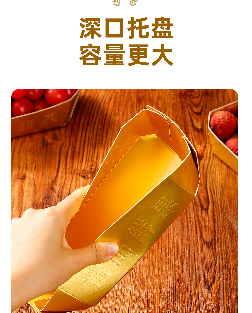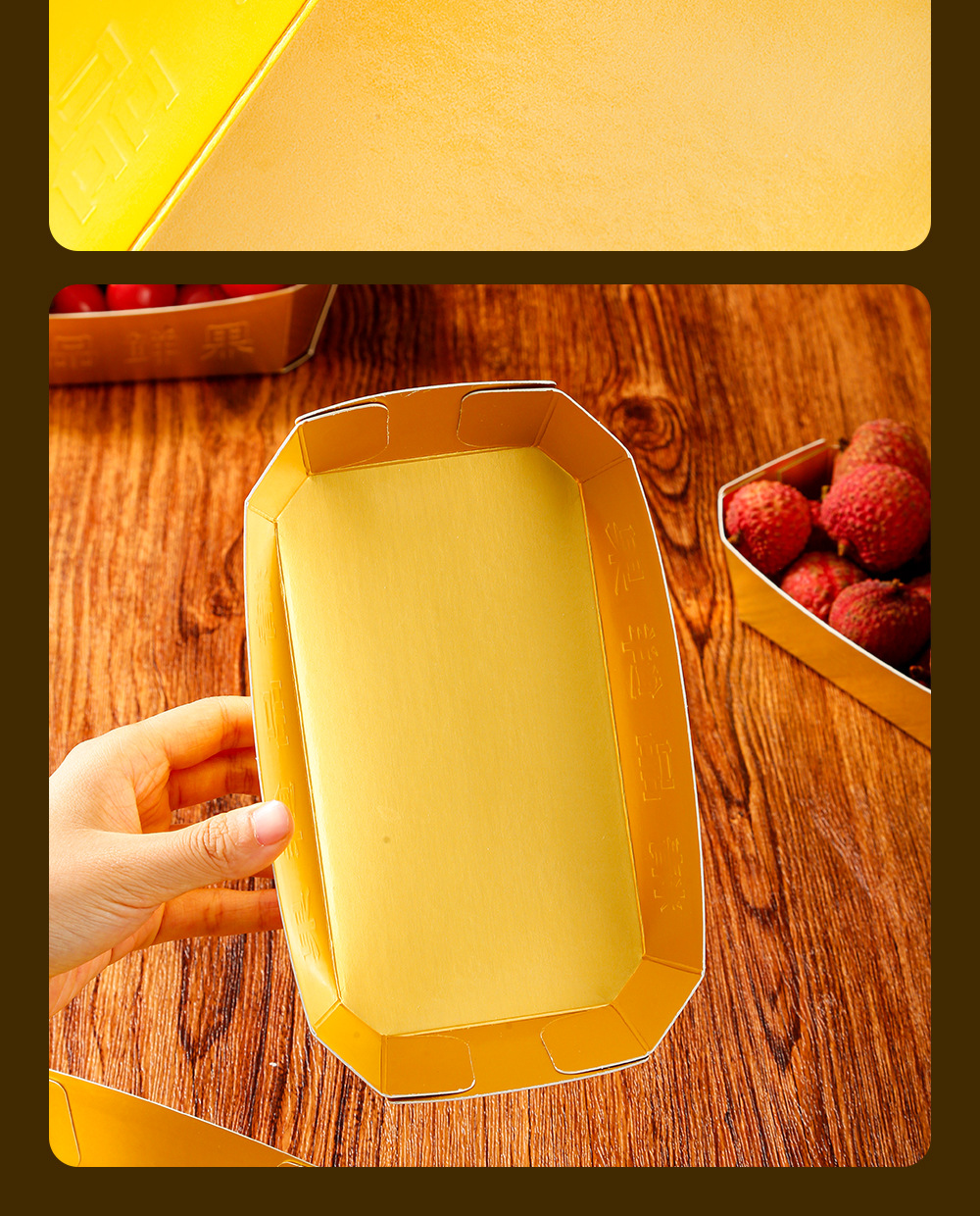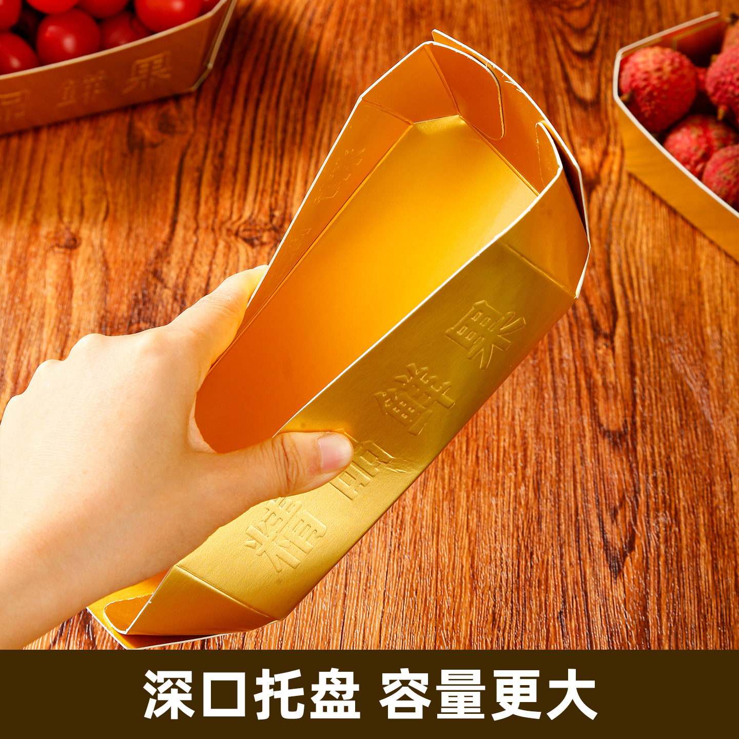 Одноразовая коробка для фруктов в форме лодки, золотая упаковка для вишни, картонная упаковка для фруктов