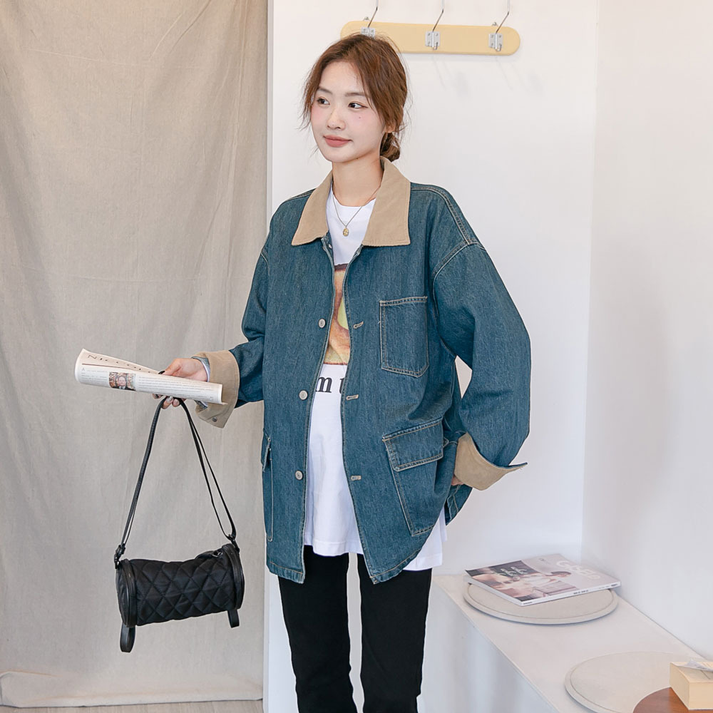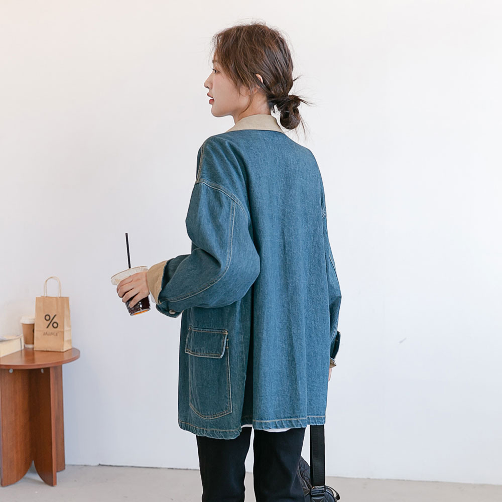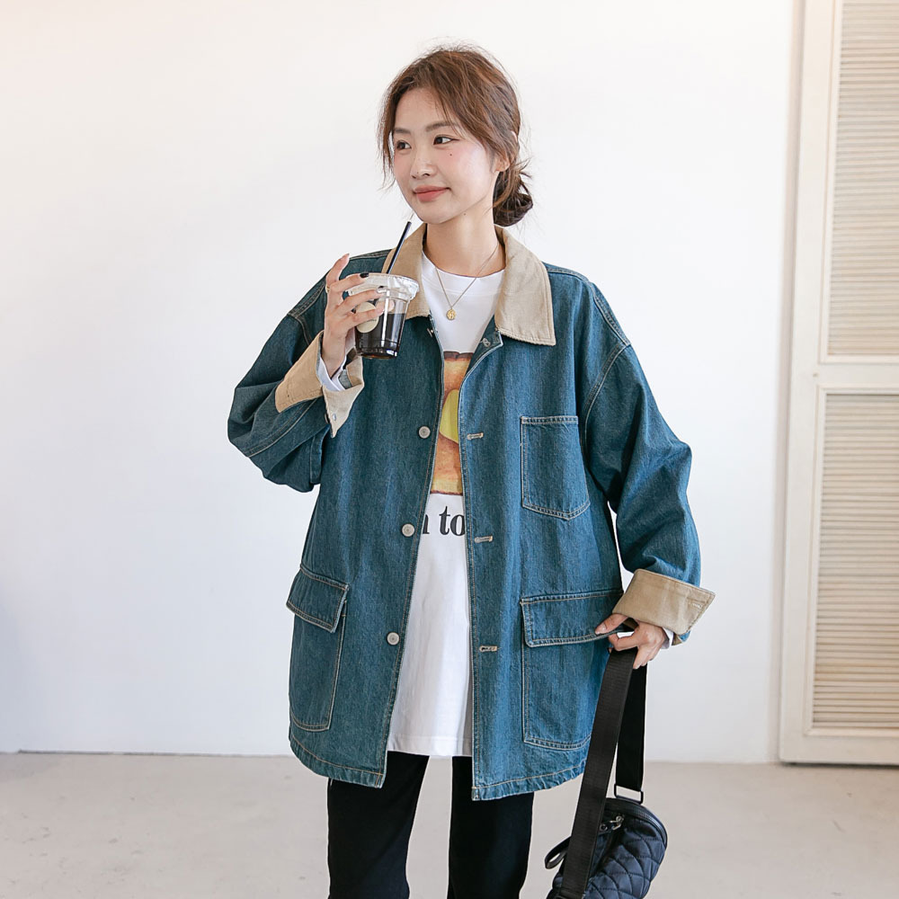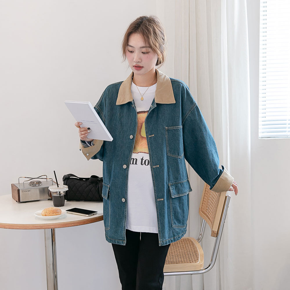 Осень Новое Прибытие Платье Материнства Интернет Популярные Модные Свободные Похудения Большой Размер Живота Покрытие Отворотом Джинсовое Пальто С Длинным Рукавом Рубашка