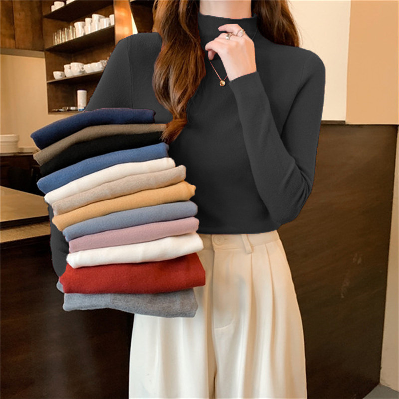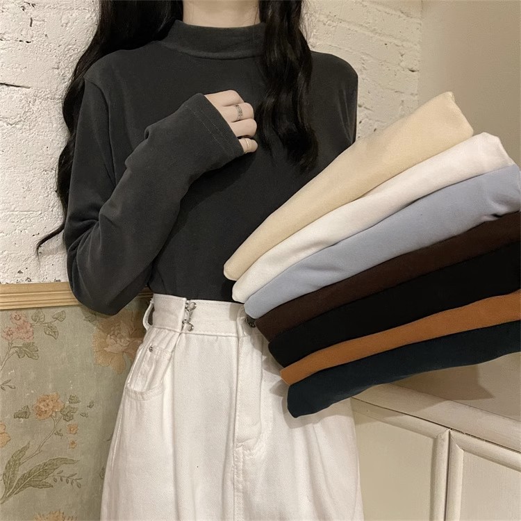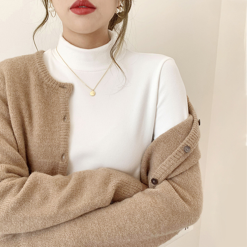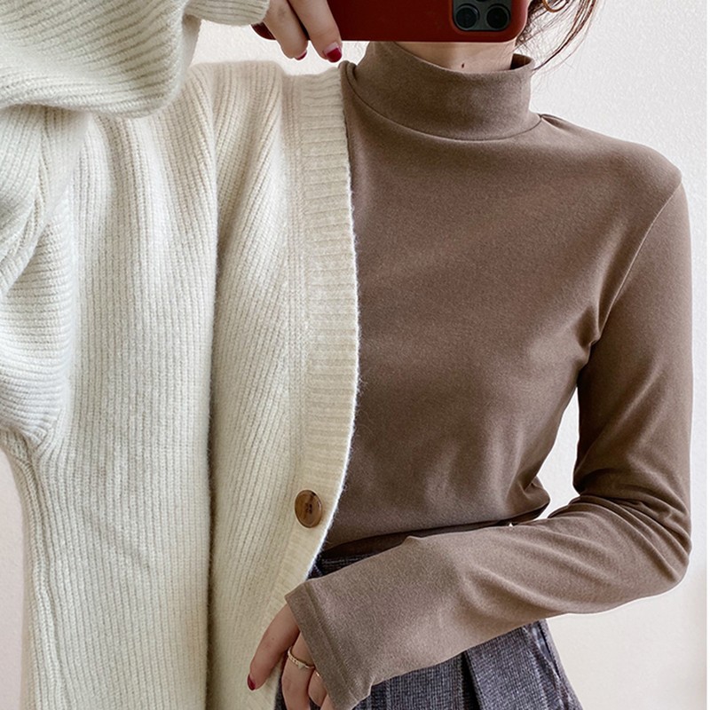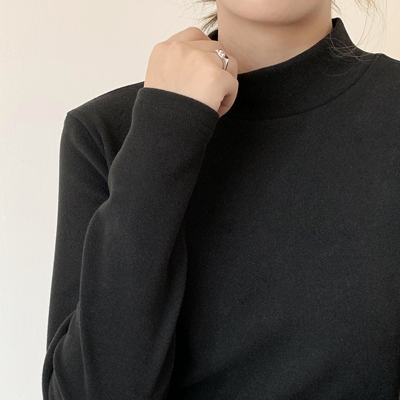 Однотонная флисовая Базовая рубашка с полувысоким воротником, Женская внутренняя одежда, осенне-зимняя утепленная Базовая рубашка с длинными рукавами на флисовой подкладке, плотная футболка
