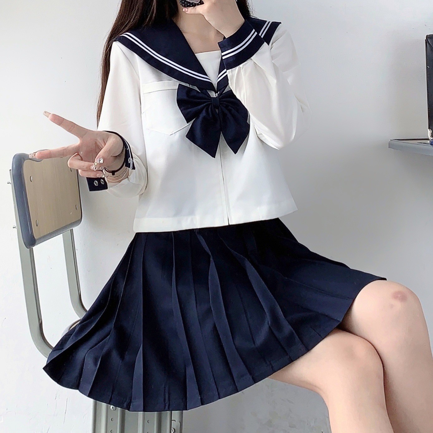 Школьная форма JK базового стиля, моряцкий костюм цвета бежевый, с длинными и короткими рукавами, в стиле колледжа, японская школьная форма, плиссированная юбка для девочек