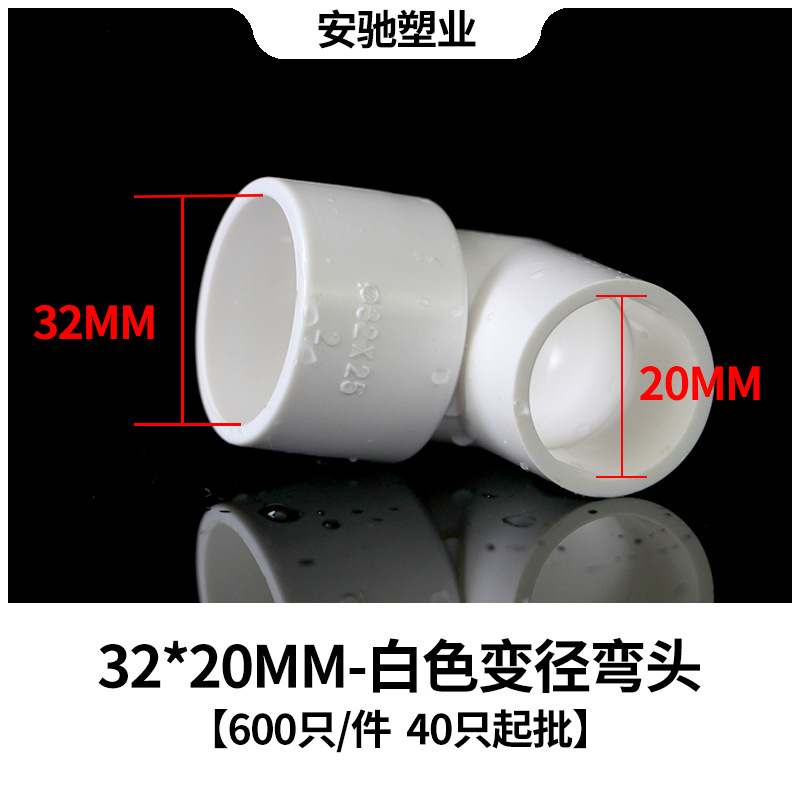 Белый 25*20 колено редуктора [850 шт/коробка 50 шт]; Белый 32*20 колено редуктора [600 PCs/Box 40 PCS]; Белый 32*25 редукторный колено [480 шт/кор 30 шт]; Белый 40*20 редукторный колено [350 PCs/box]; Белый 40*25 редукторный колено [315 pcs/box]; Белый 40*32 уменьшающий локоть [260 шт./Коробка]; Белый редукционный локоть 50*20 [240 шт./Кор.]; Белый 50*25 редукционный локоть [220 шт./Кор.]; Белый 50*32 редукционный локоть [200 шт./Кор.]; Белый 50*40 редукционный локоть [150 шт./Кор.]