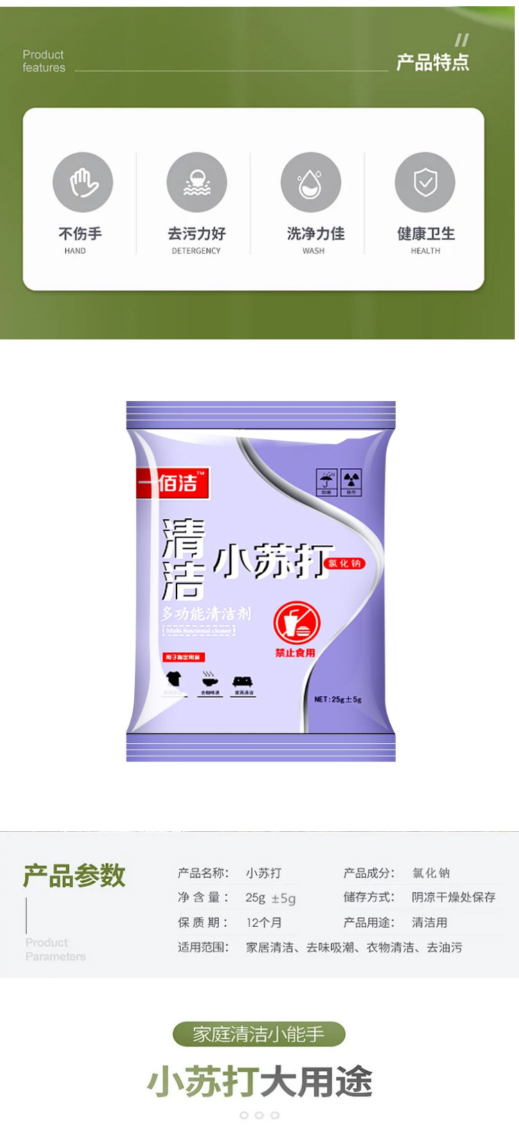 Небольшие пакеты пищевой соды 25 г кухонного масляного моющего средства с несколькими спецификациями могут быть отправлены от имени источника прямых оптовых продаж фабрики