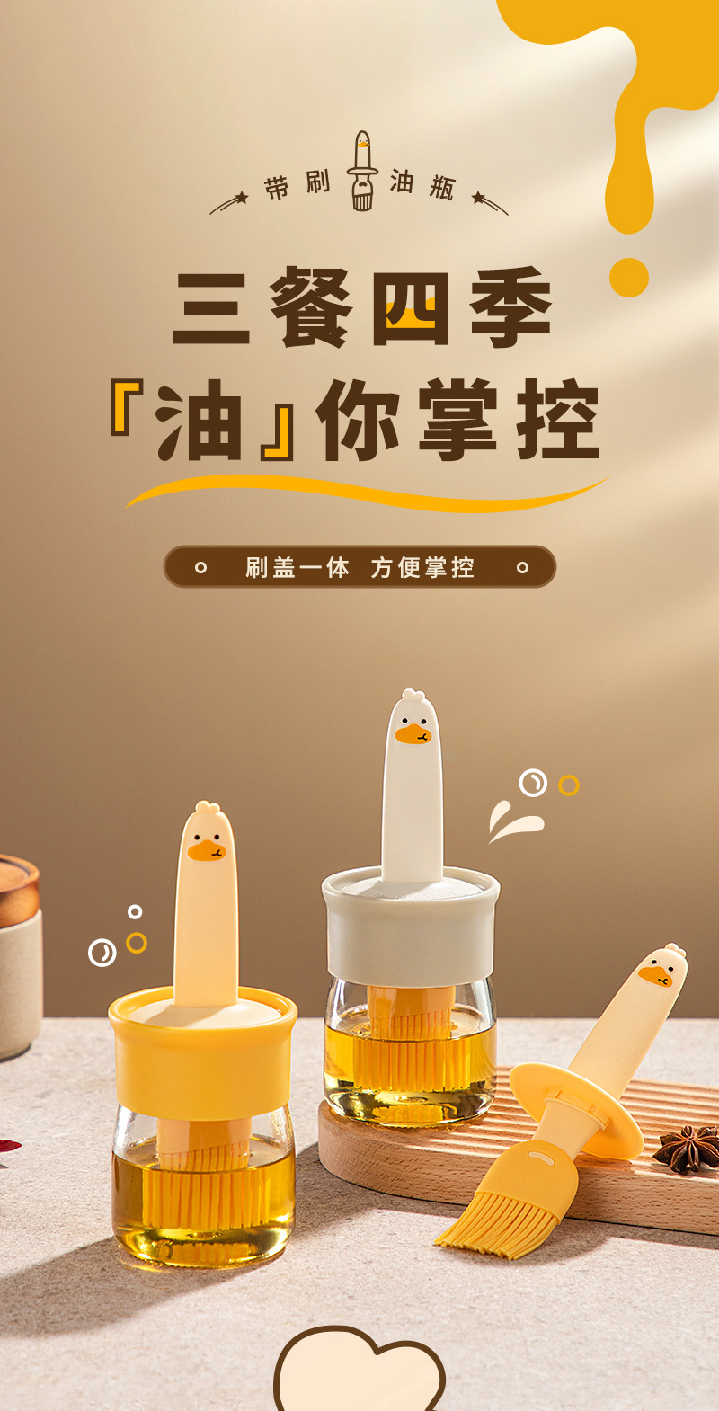Утенок масляная щетка Бутылка Встроенная щетка для барбекю Пищевая кухня Силиконовая масляная щетка Высокотемпературная устойчивая щетка