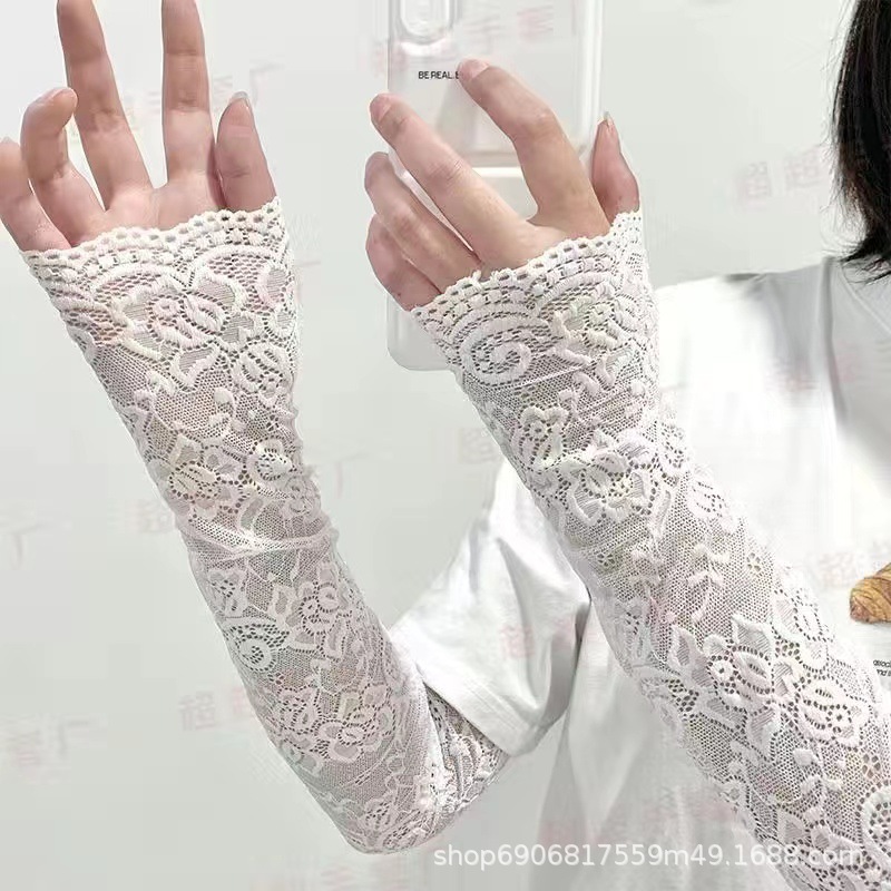 Кружевной Длинный солнцезащитный рукав Женская летняя защитная накладка на руку Ледяной шелк Вождение Велоспорт Ледяной оттенок Защита от ультрафиолета