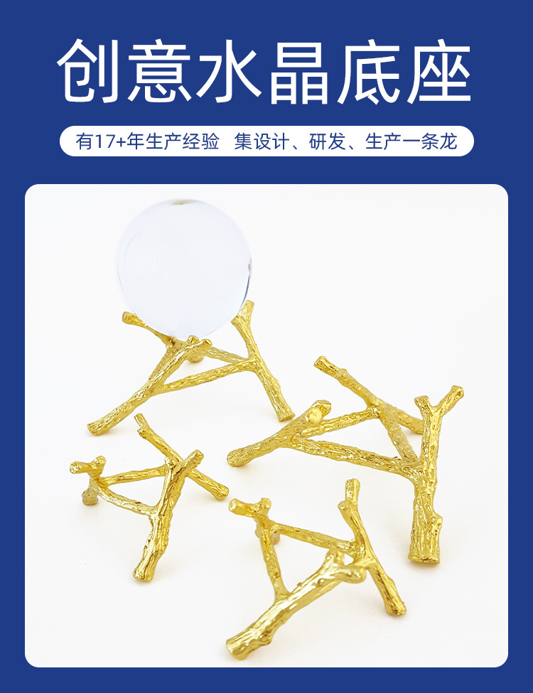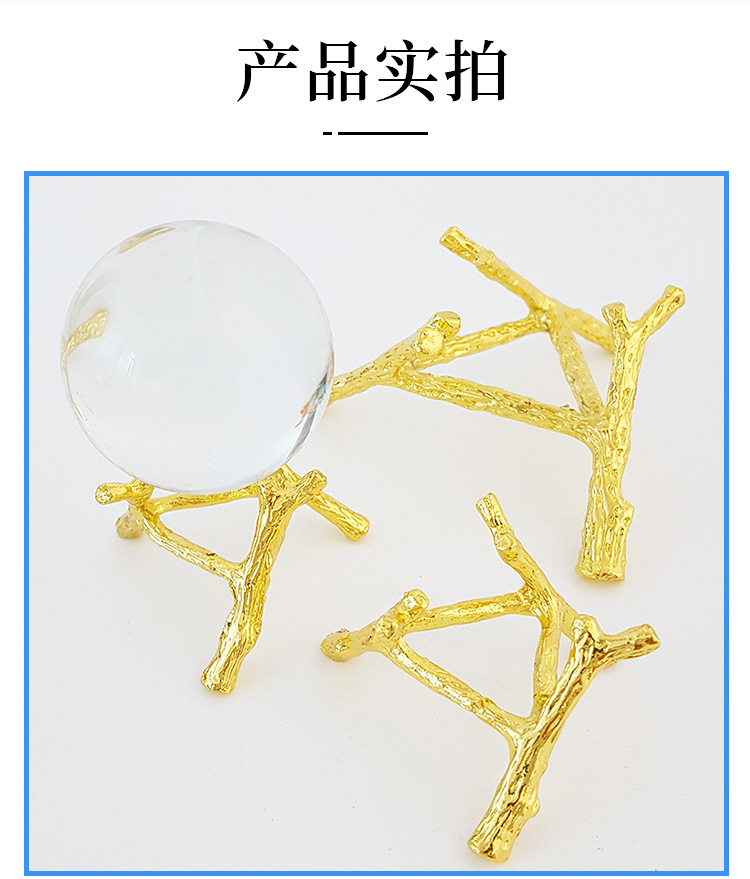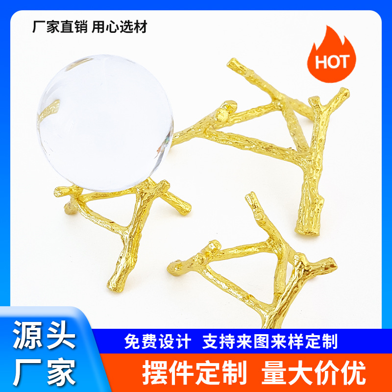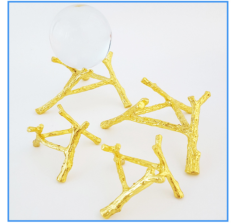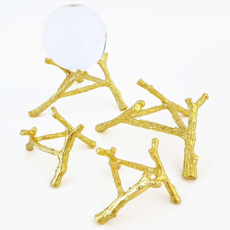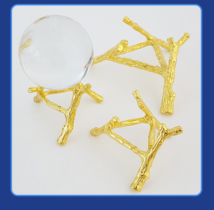 Хрустальный шар в форме ветви с золотым основанием, подставка для демонстрации кристаллов и минералов, креативное украшение.