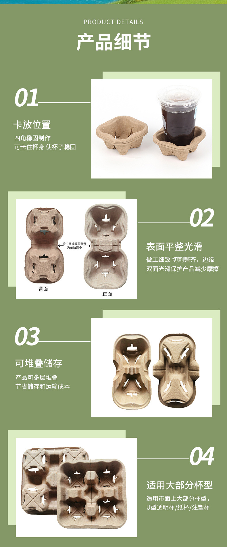 Одноразовые чашки для чая с молоком Разборная/двойная/четырехчашечная подставка для разлагаемой целлюлозы