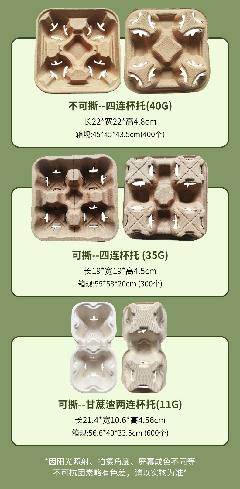 Одинарный подстаканник (11 г) 10,5*10,5*4,5 см; Разрываемые две части (20 г): 21,6*11*4,5 см.; Нерозрываемые две части (20 г): 22,2*12*4,5 кв.; Разрывные четыре штуки (38 г) 23*18,5*4,6 см; Нерозрываемые четыре последовательных (40 г) 22*22*4,8 см; Разрывные четыре штуки (35 г) 19*19*4,5 см.; Разрывной сахарный шлак (11 г) 21,4*10,6*4,5 см