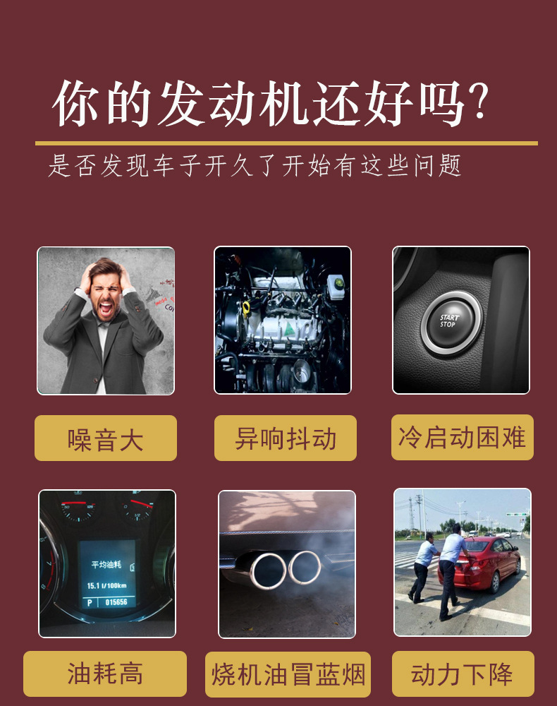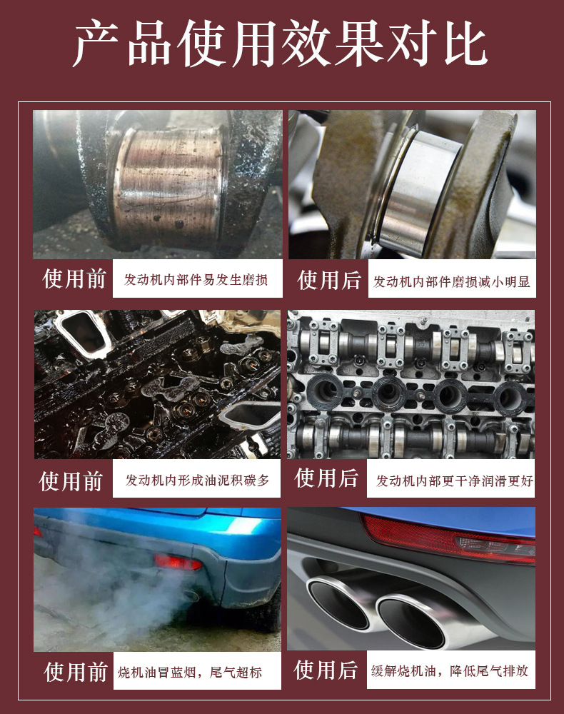 抗磨修复,缓解烧机油冒蓝烟,减小噪音抖动,保护引擎