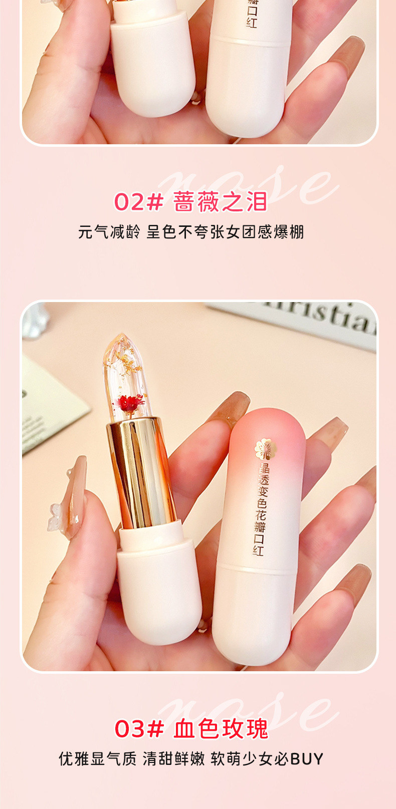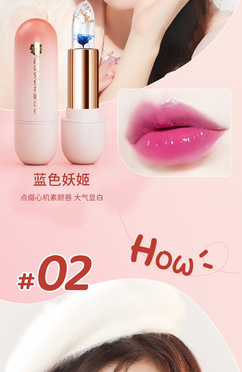 Помада HAIPINK с лепестками, меняющими цвет кристаллов
