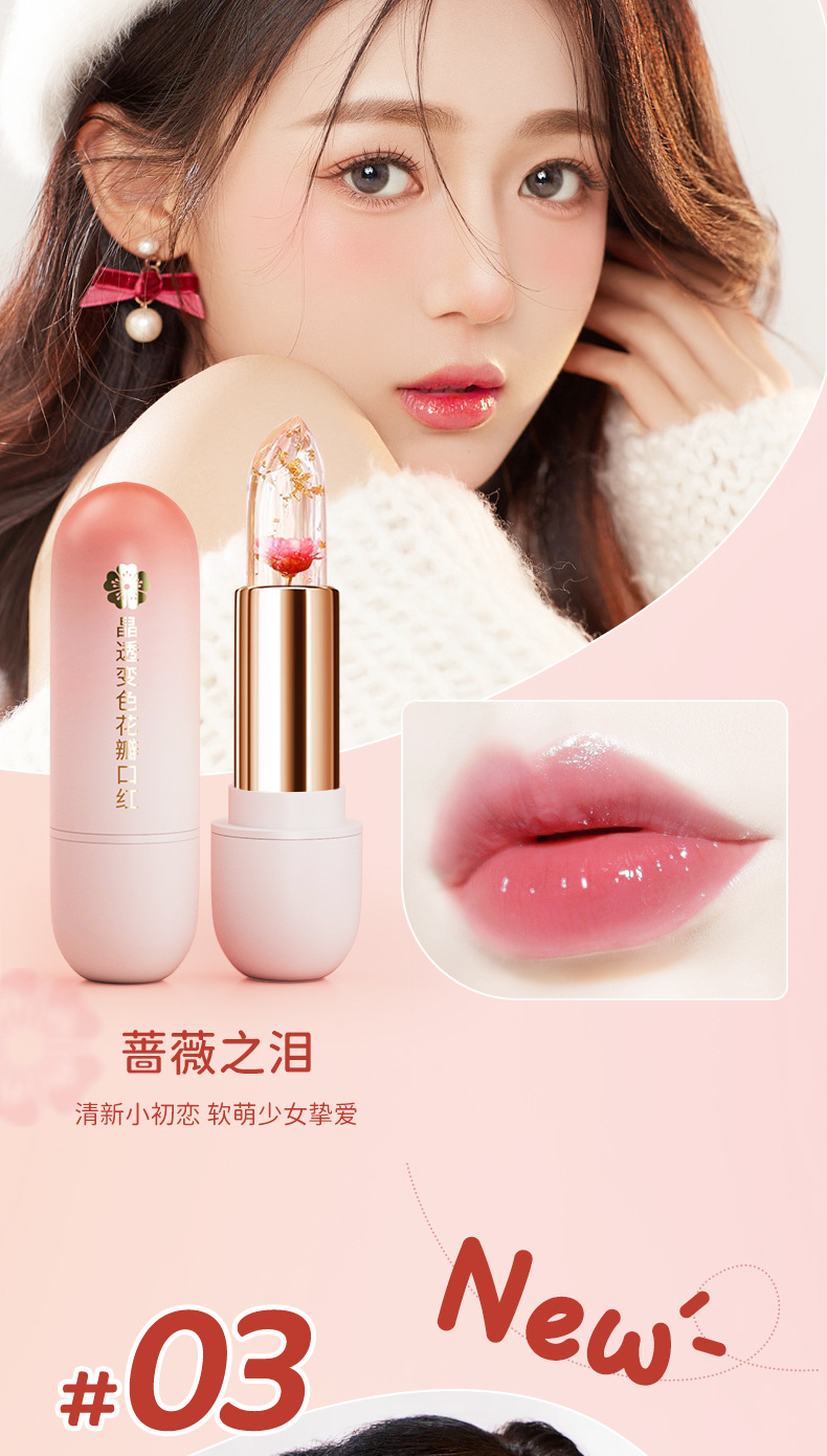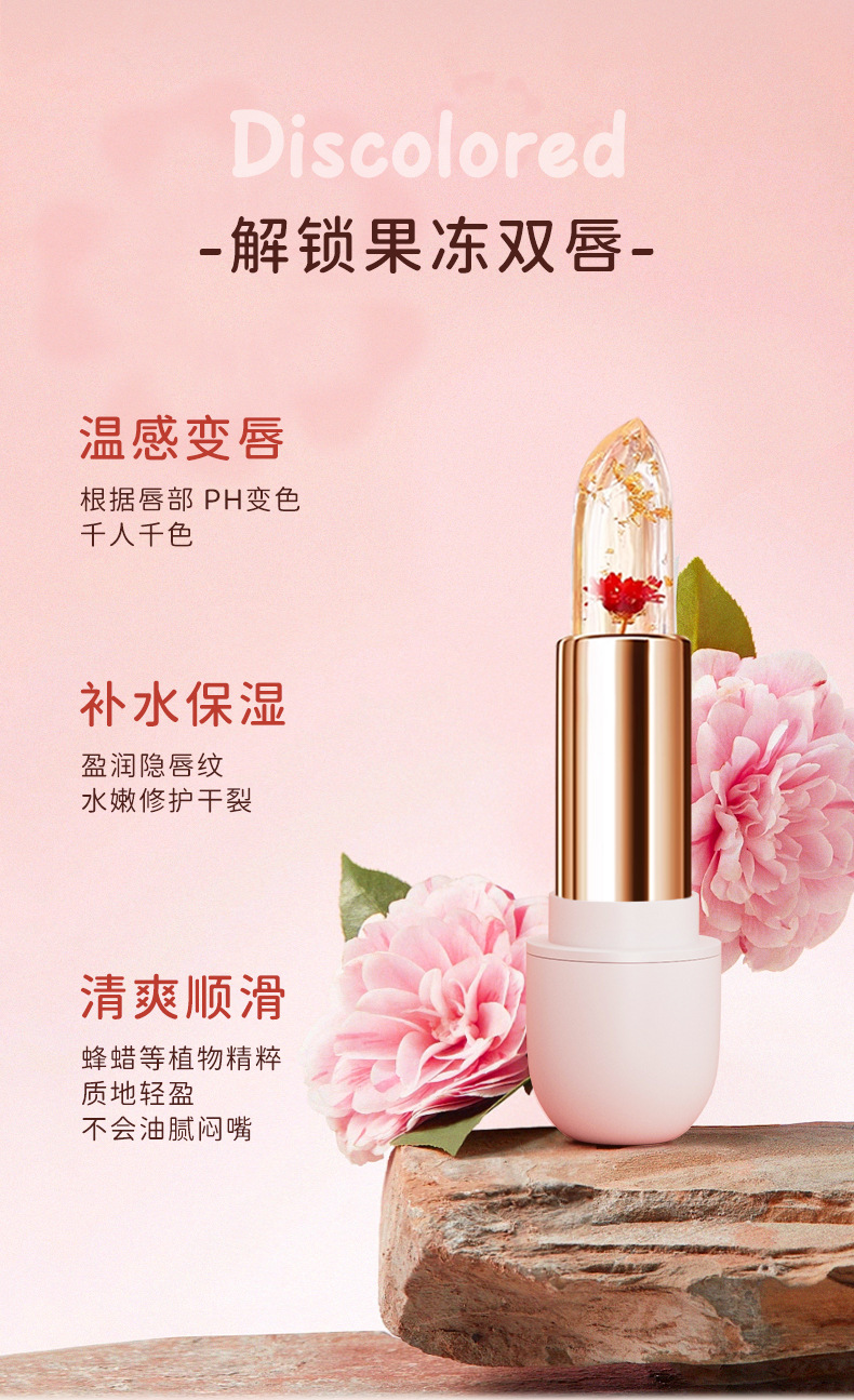 HAIPINK кристально прозрачный меняющий цвет лепестки Желейная помада губная помада теплая ленивая макияж увлажняющая на ощупь вода губная помада