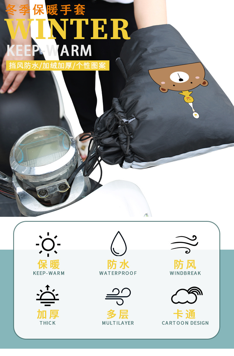 Перчатки для электромобилей Зимние теплые утолщенные водонепроницаемые аккумуляторные автомобильные мотоциклетные ручки Крышка ручки лобового стекла Увеличенная защита от холода