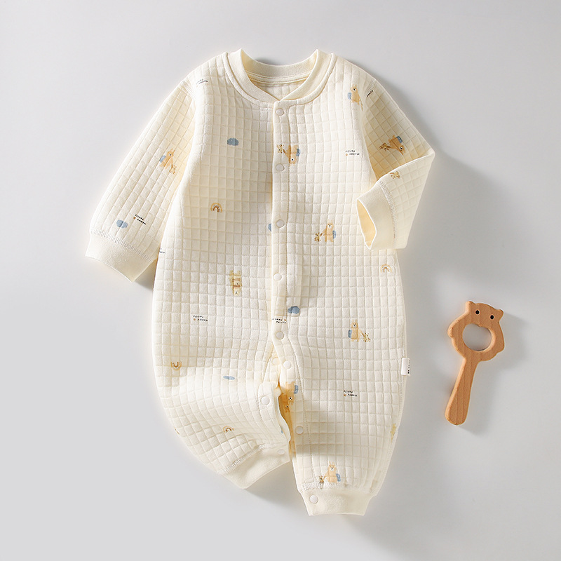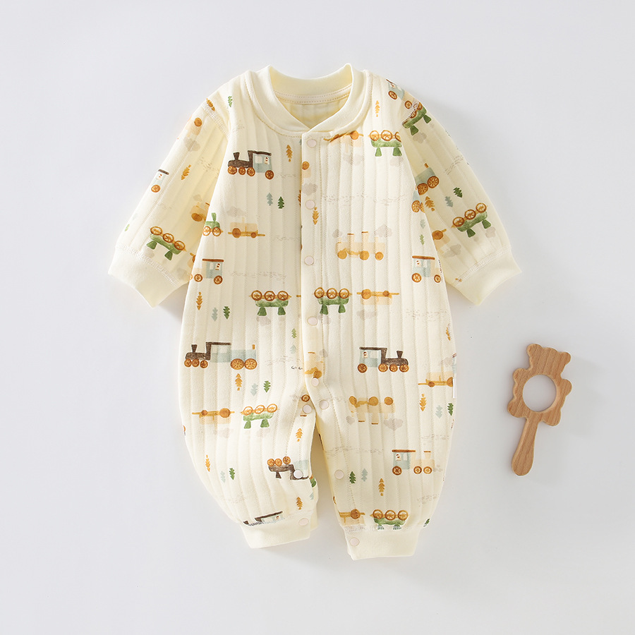 Младенческое сиамское пальто с длинными рукавами и хлопковой подкладкой, трехслойное теплое сиамское пальто для новорожденных, осень и зима